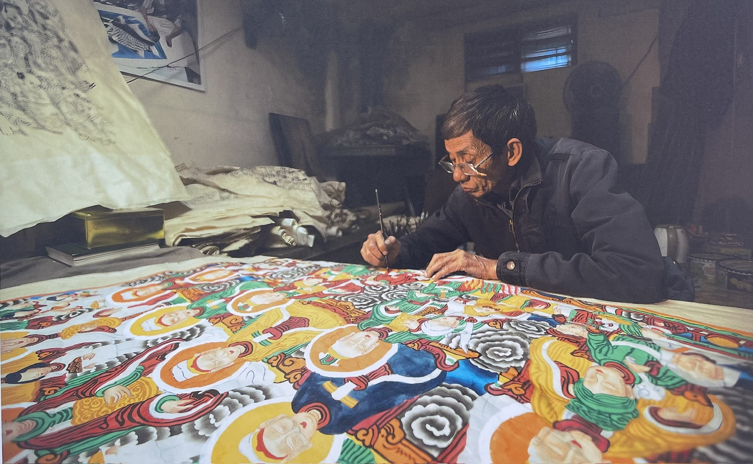 Artisan Le Dinh Nghien is renowned for preserving the Hang Trong folk painting tradition. This unique painting style originated in Vietnam around the 16th century, representing a blend of Buddhist and Confucian essence. |