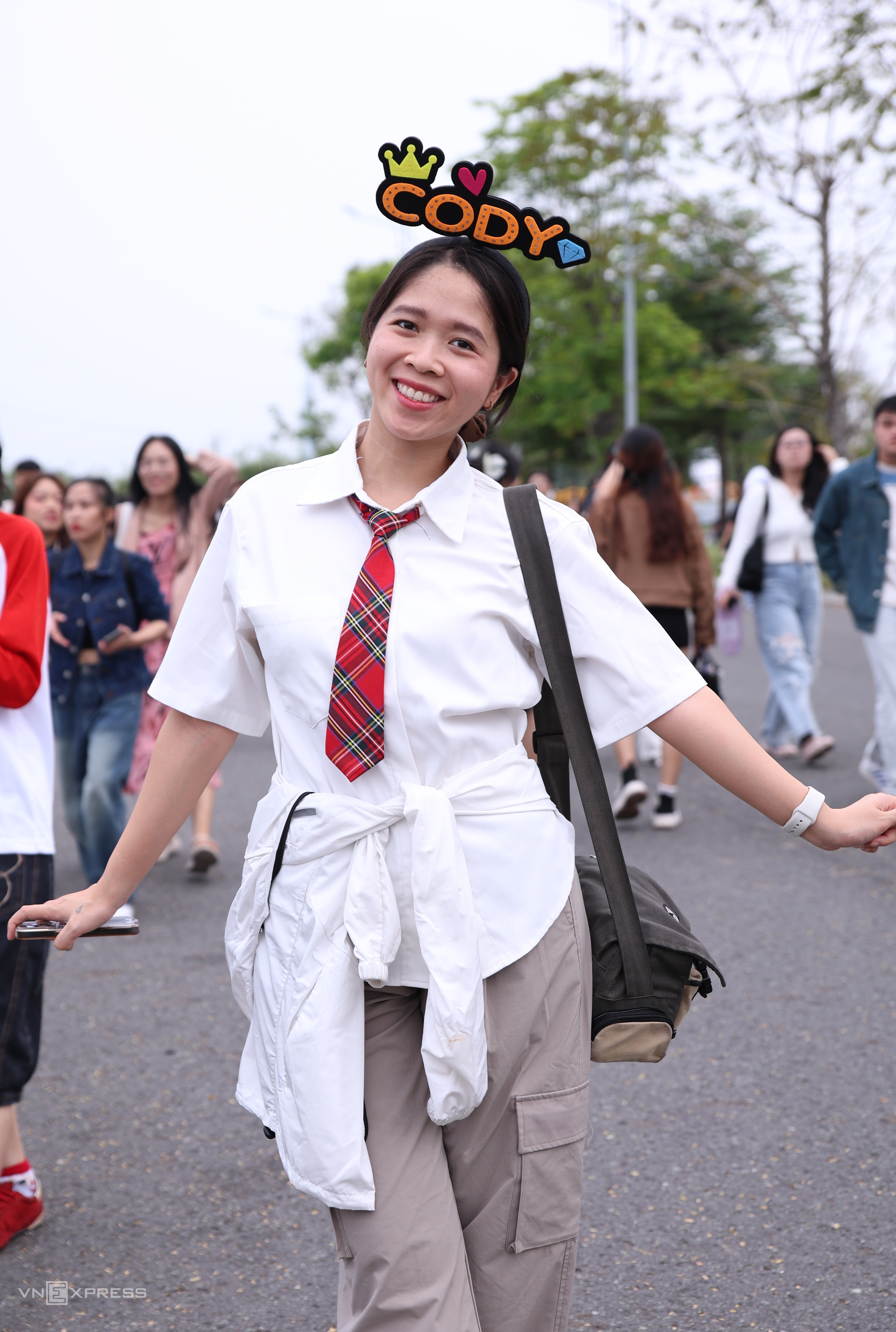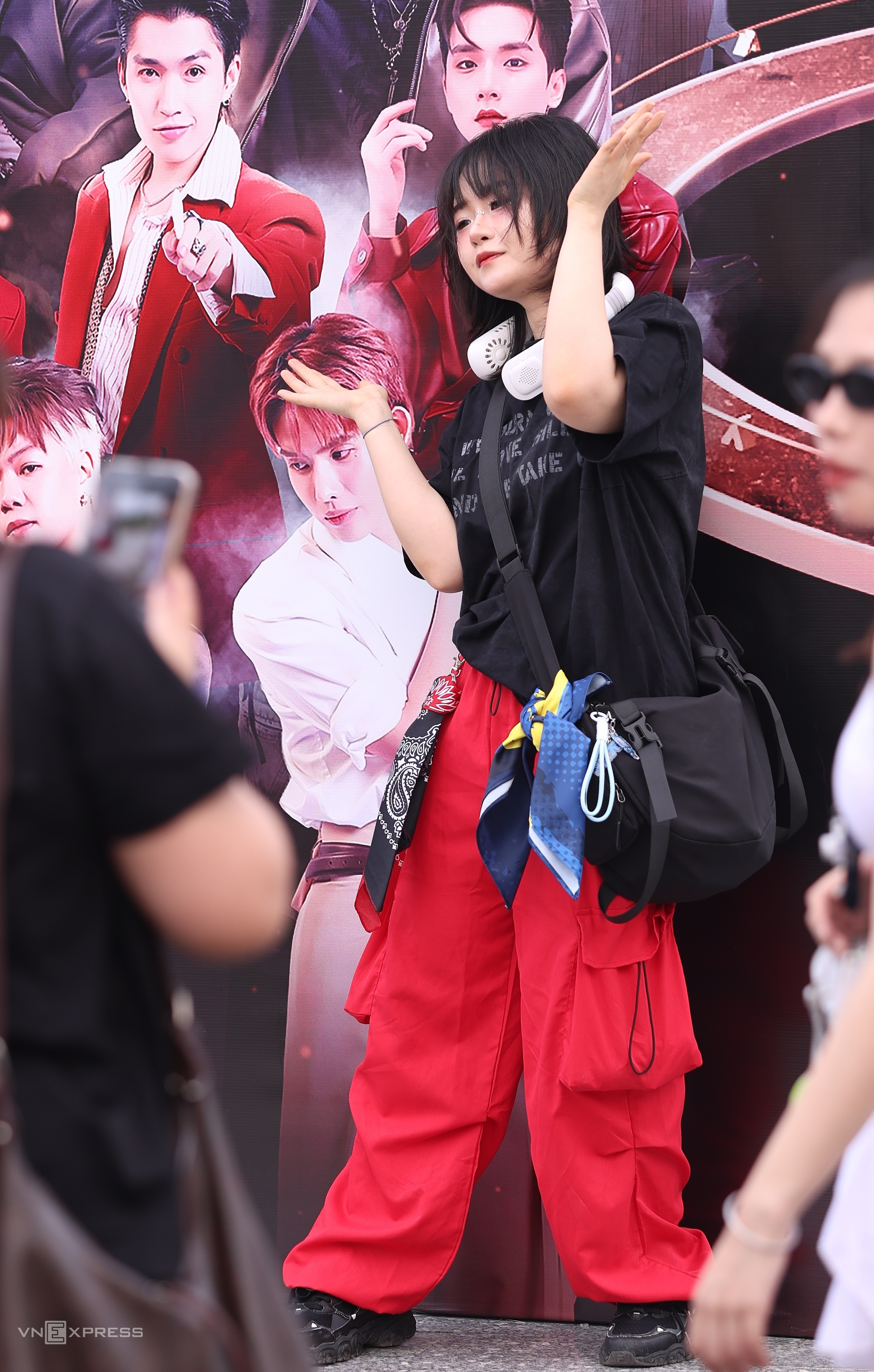 Hong Ha, 32, a fan of singer Cody Nam Vo, dressed dynamically and wore a headband. She began following the singer at Live Stage 3, impressed by his dance battle performance. |