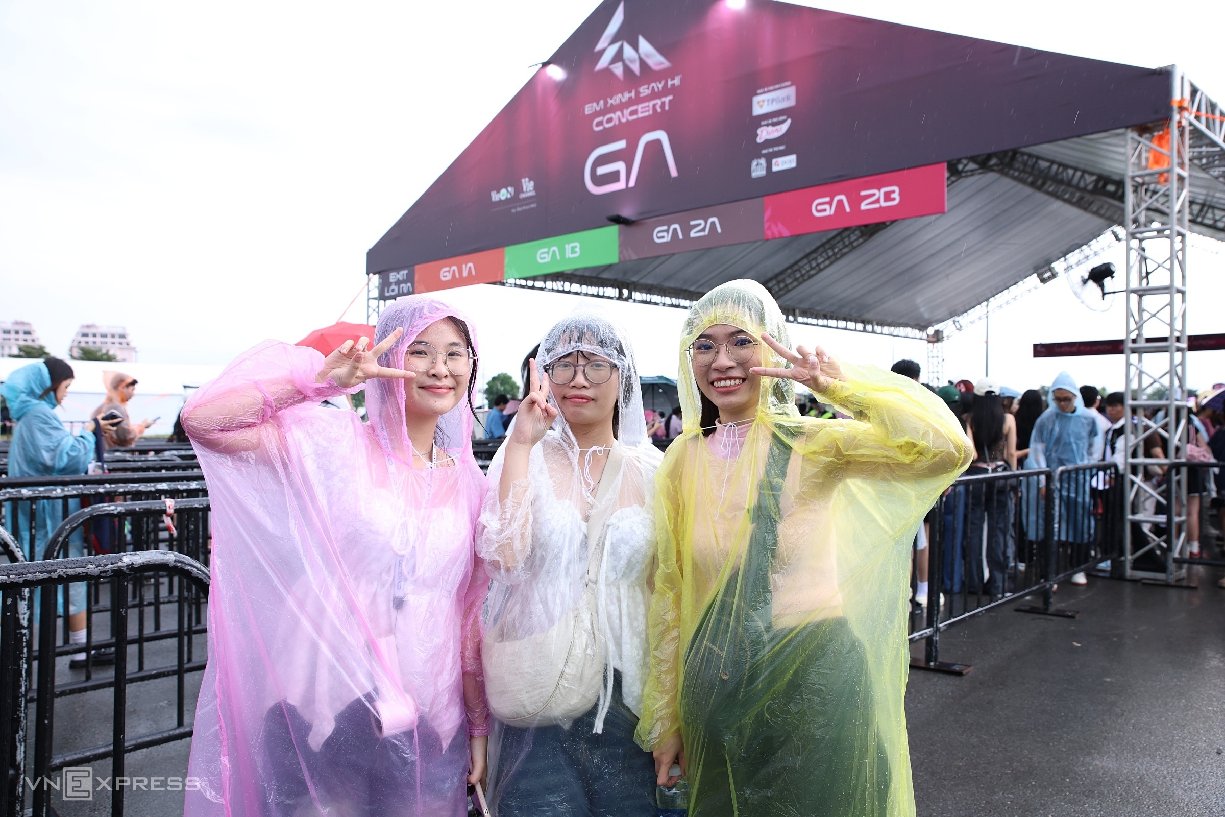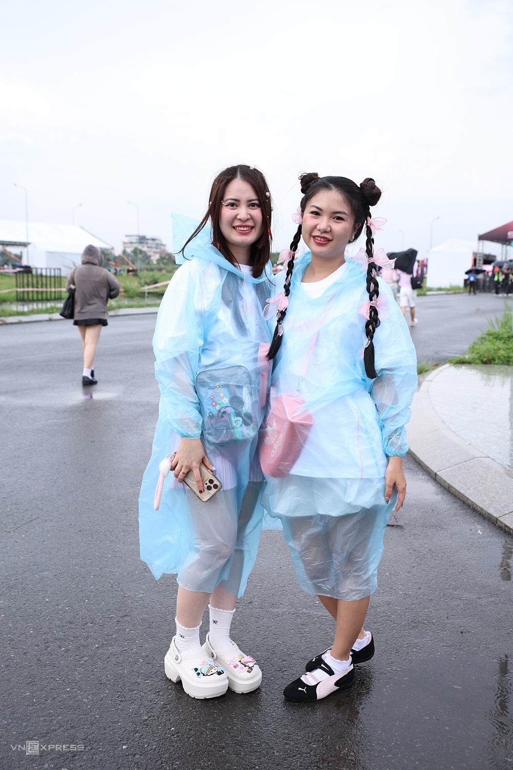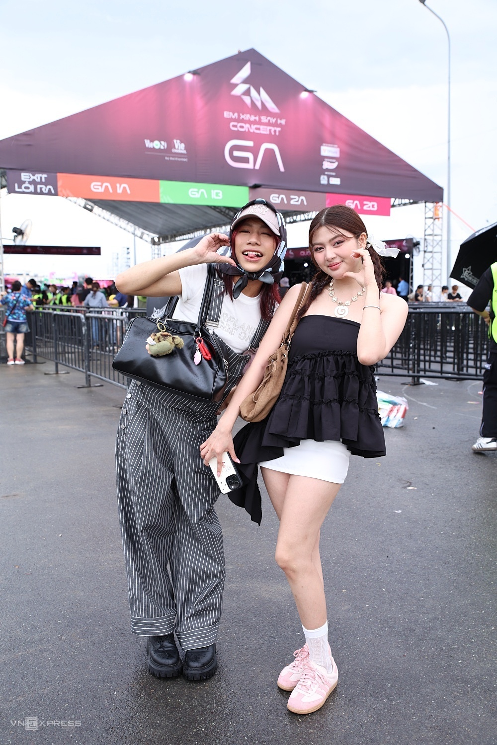 Most of the attendees were Gen Z. Despite the unfavorable weather, fans of the "em xinh" (beautiful girls) maintained their youthful styles. Many teenage girls sported braids, ribbons, and cartoon-themed accessories.