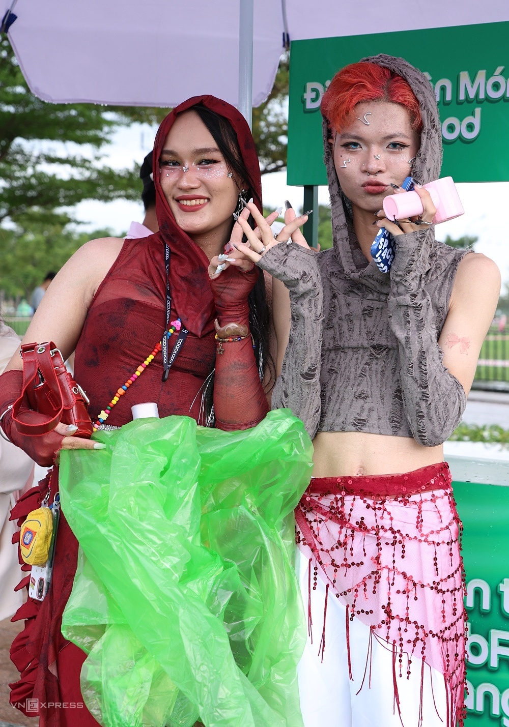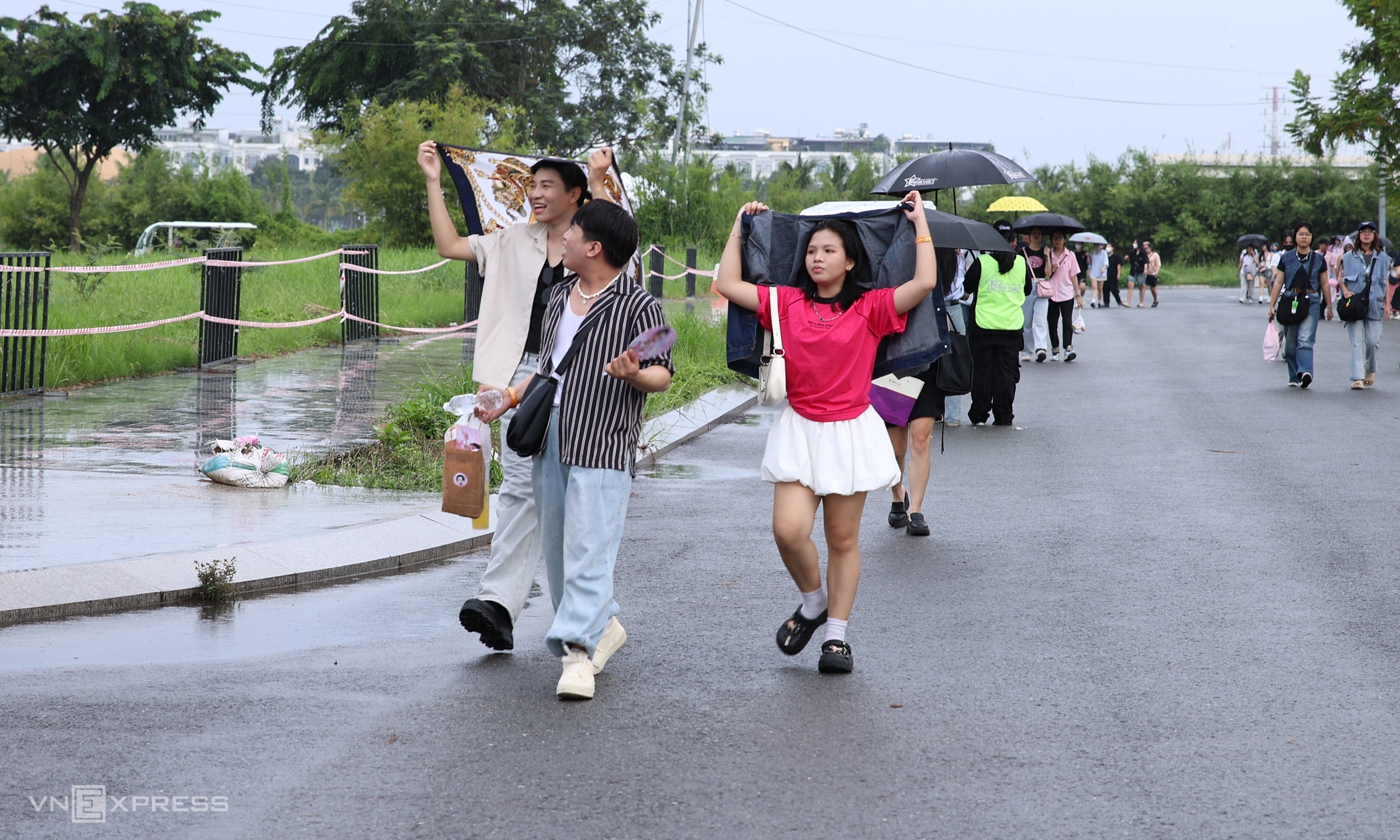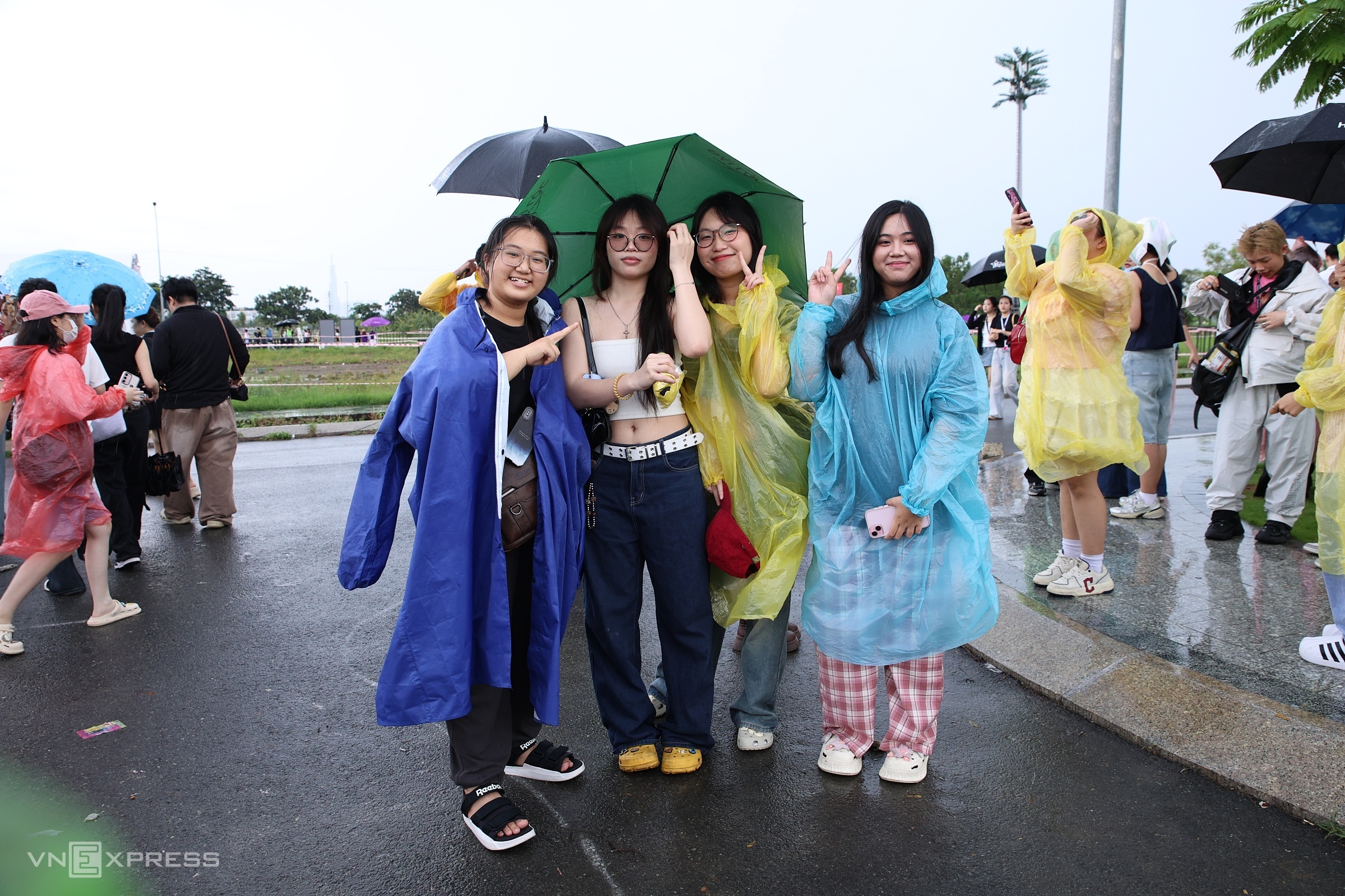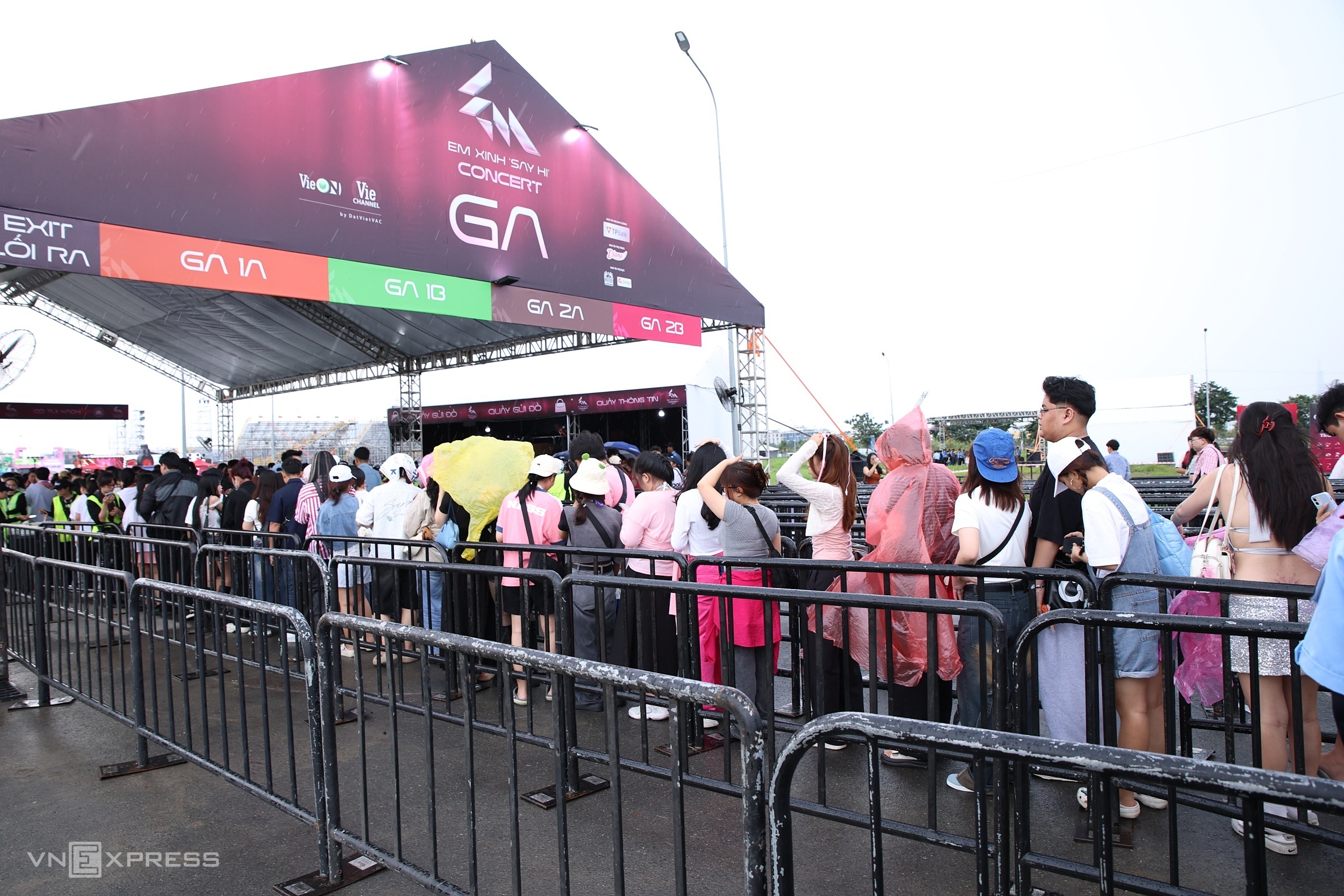 Most of the attendees were Gen Z. Despite the unfavorable weather, fans of the "em xinh" (beautiful girls) maintained their youthful styles. Many teenage girls sported braids, ribbons, and cartoon-themed accessories.