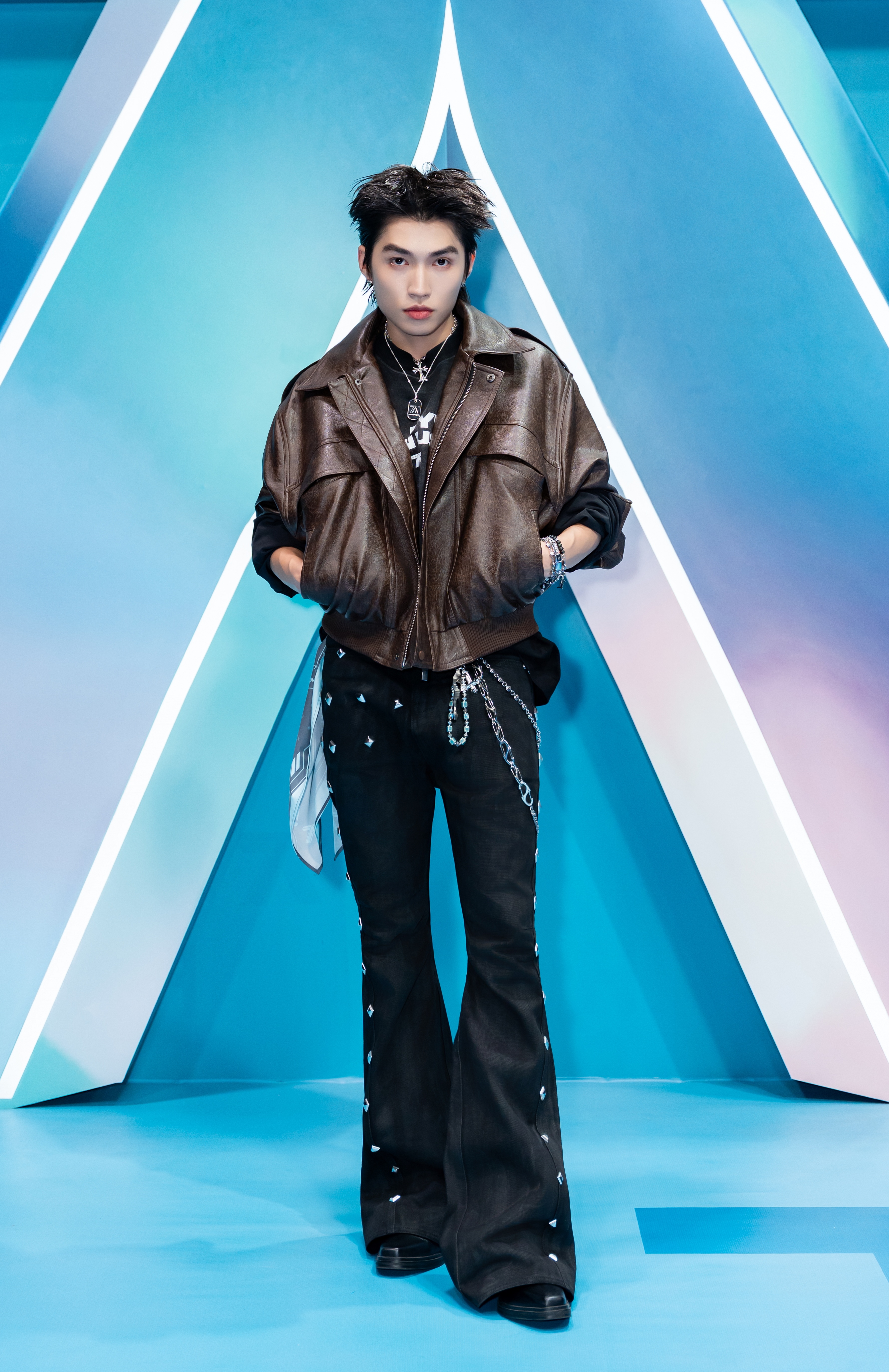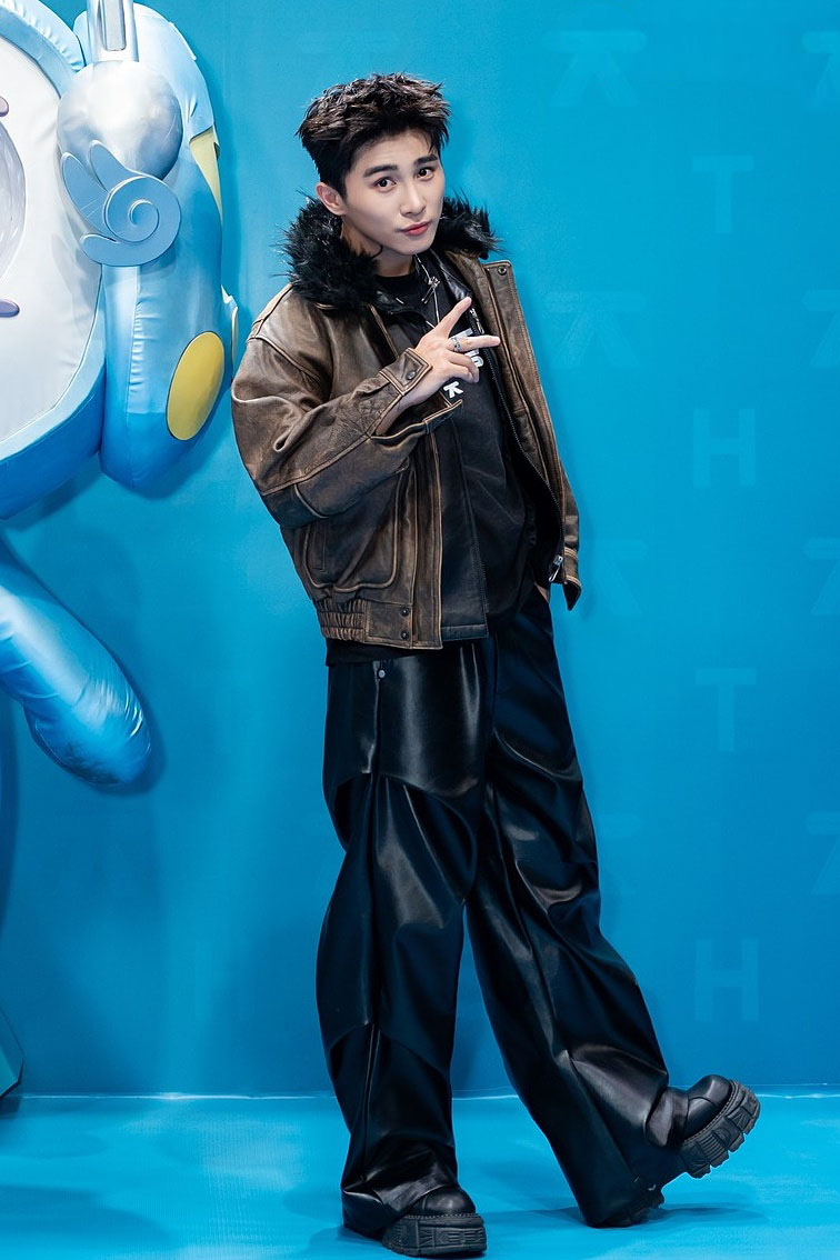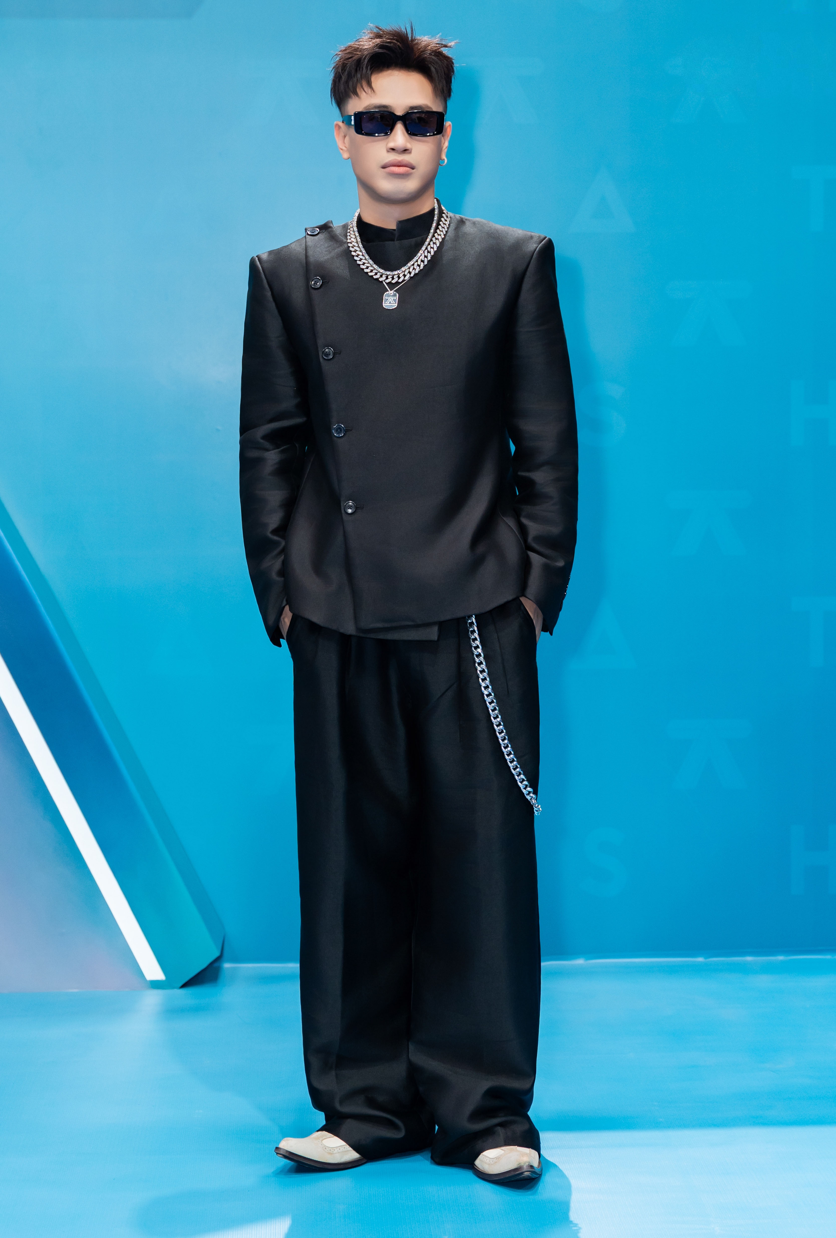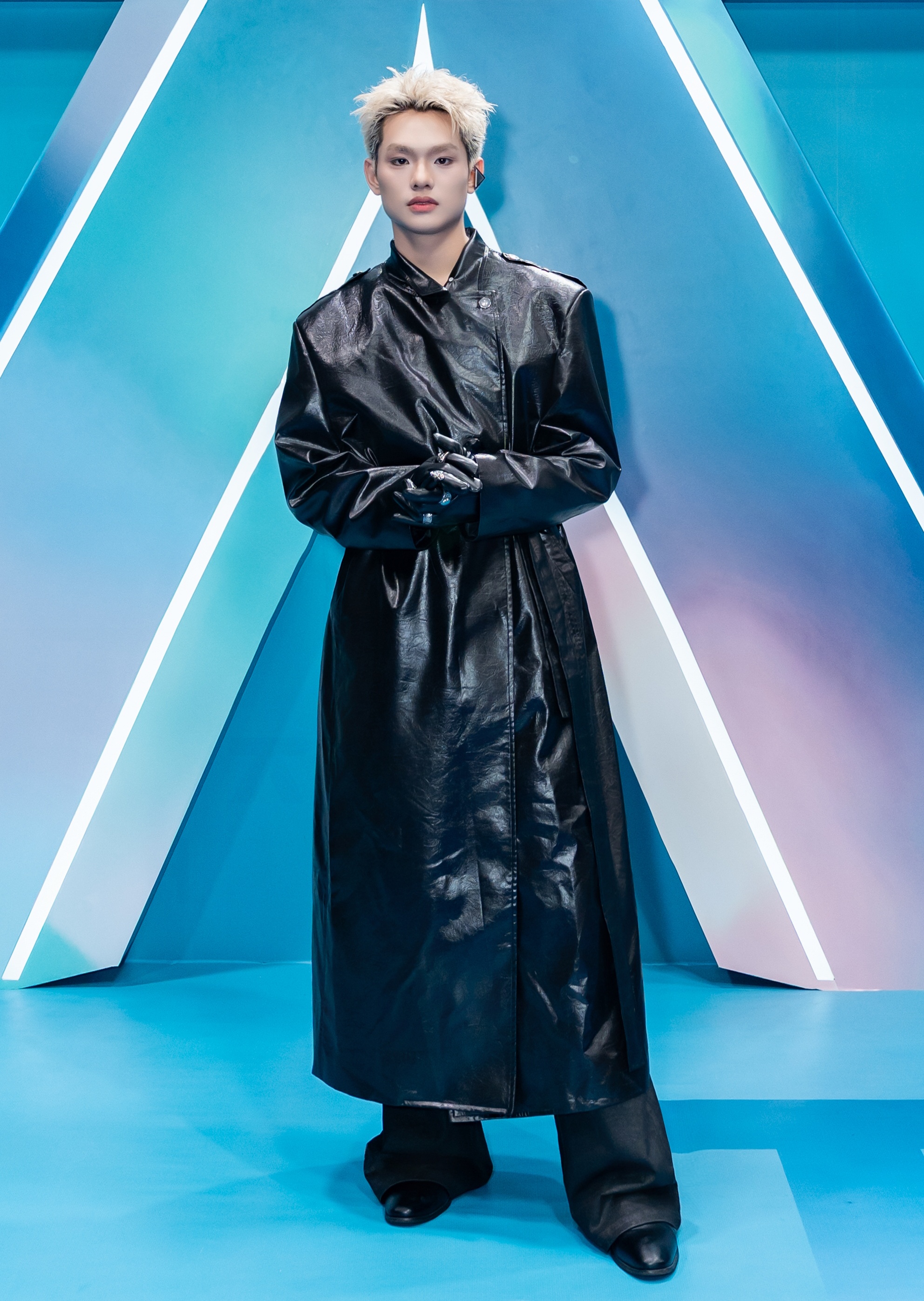 buitruonglinh, a candidate for the season's championship, wore an all-black outfit featuring a long leather jacket, matching gloves, and shoes.