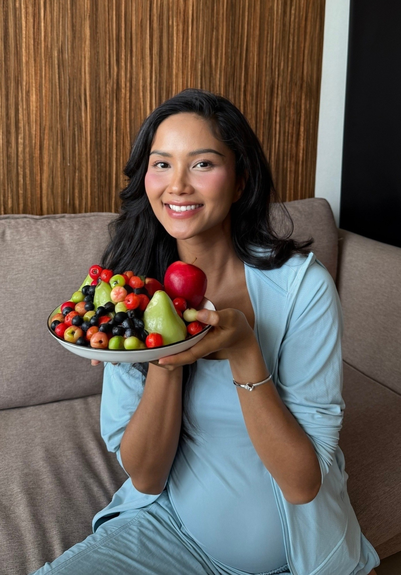 Every day, she makes sure to get enough sleep. She also often reads books and plays music for her baby.