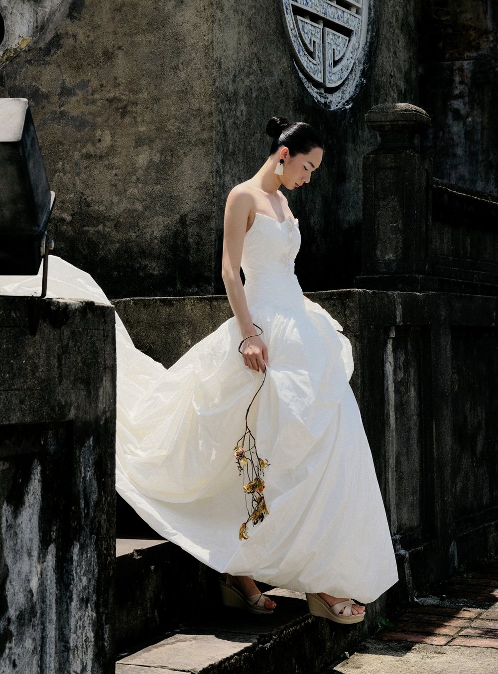 Quynh Anh (full name Nguyen Quynh Anh), 33, is from Hanoi. She established her high-end wedding dress brand in 2016. Her designs focus on traditional handcrafting techniques.