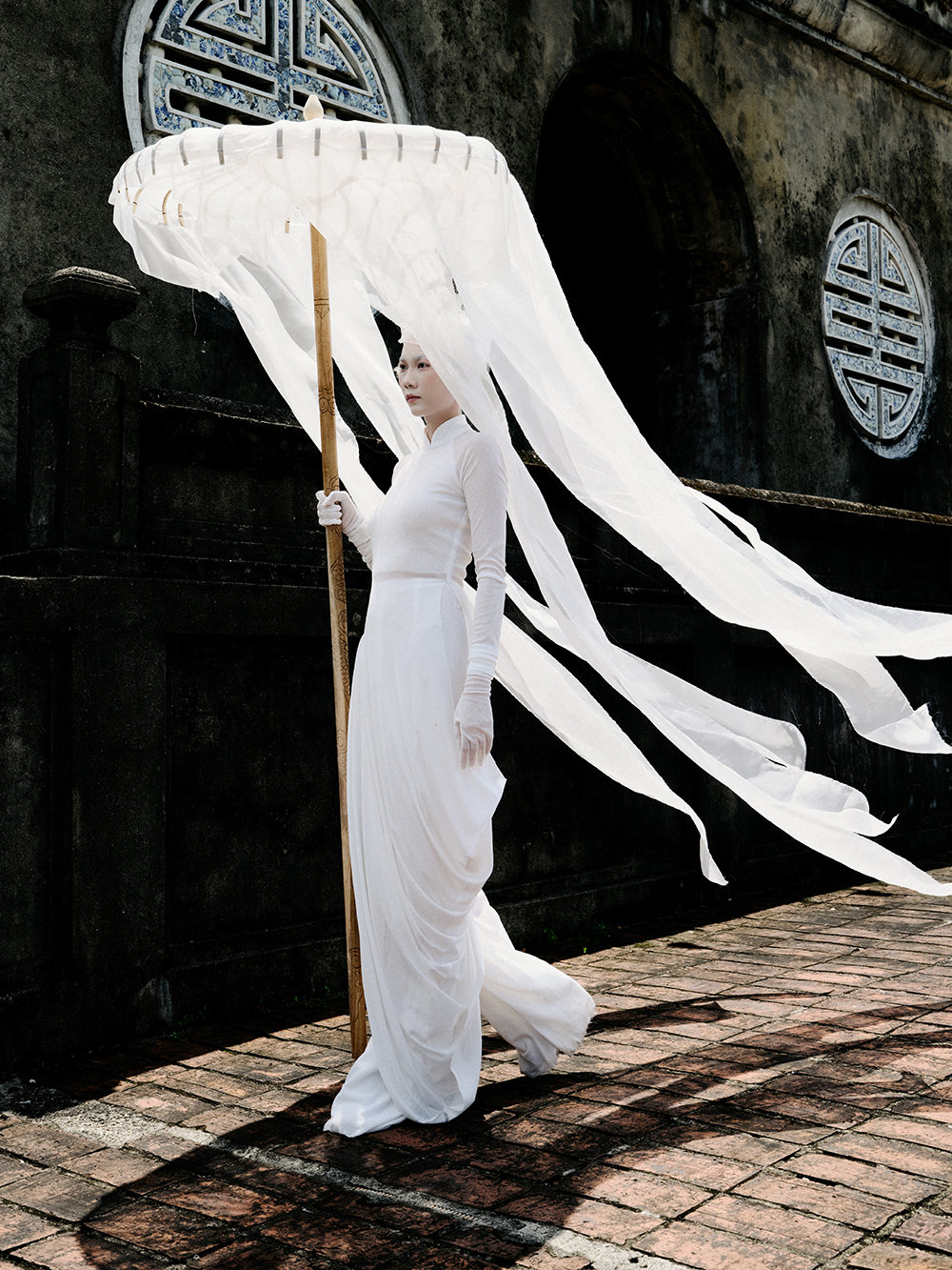 The garments draw inspiration from Hue's royal embroidery art, blending the gentle, romantic aesthetic of the city.
