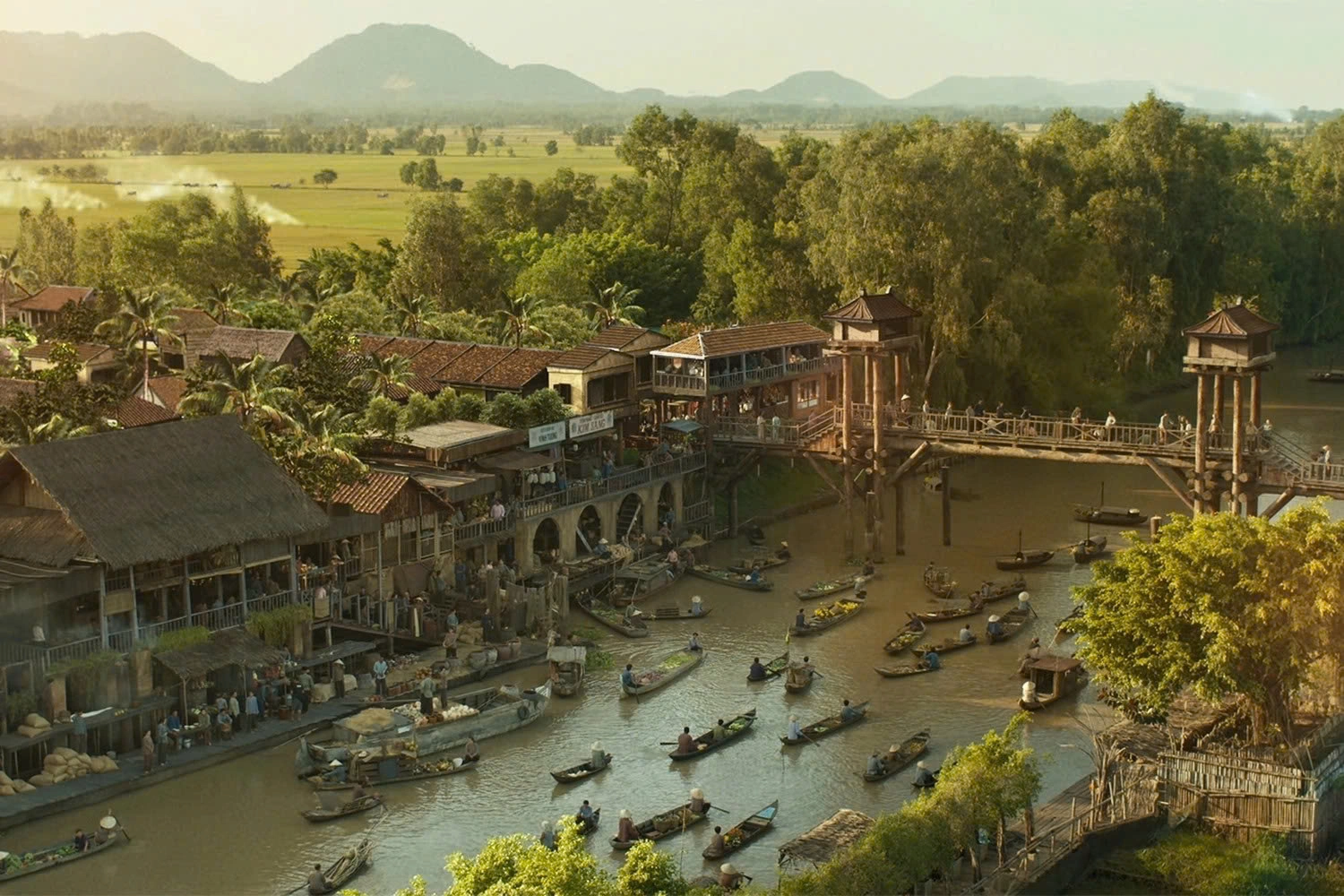 An expansive scene depicting an old southern floating market in "Dat rung phuong Nam". Photo: Thanh Huyen |