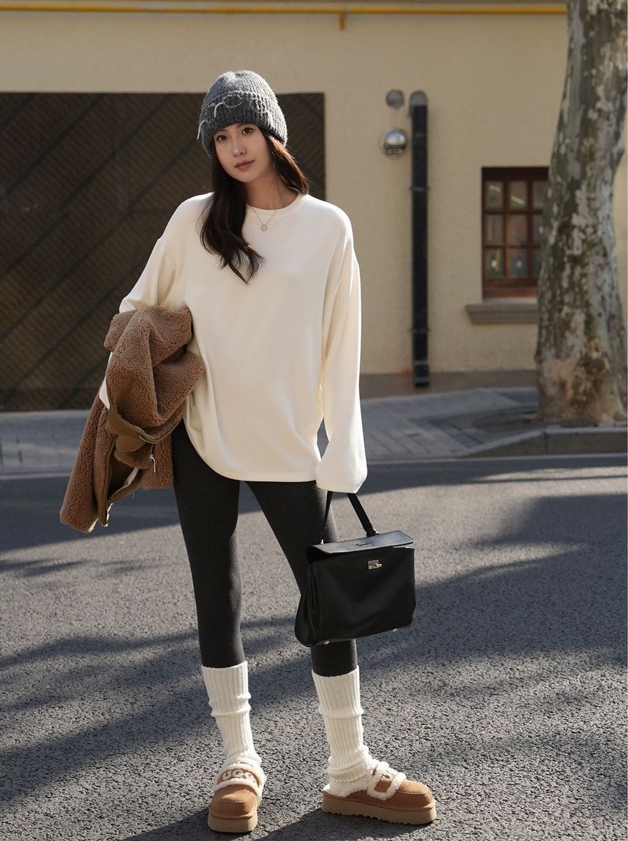 Vietnamese celebrities are among those leading the trend. Singer Ho Ngoc Ha recently showcased her thermal leggings during a trip to New York on 29/11. She opted for a thick, two-layer pair, combining them with a cozy sweater, sneakers, and a baseball cap to create a dynamic and comfortable travel look. Similarly, Chi Pu chose thermal leggings for warmth, pairing them with a sheepskin-lined suede jacket during her outing in Trung Quoc. Le Quyen, while traveling in Europe, selected two styles of thermal leggings, one black and one white, to complement her tall boots and fur coat, exuding a luxurious aesthetic.
