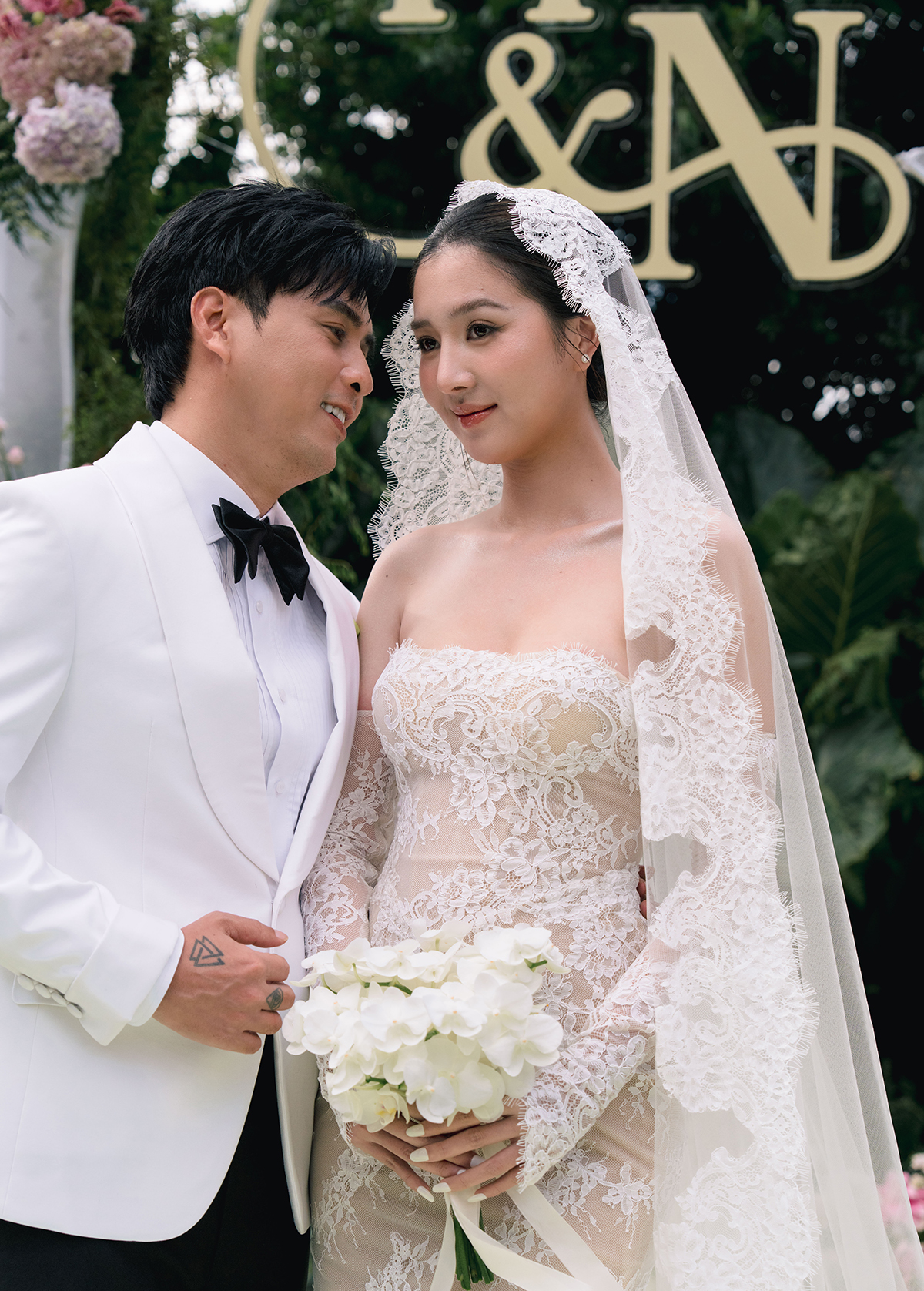The wedding of singer Ho Quang Hieu and former model Tue Nhu took place at 5 PM in an outdoor setting at a resort in Binh Duong ward. Before approximately 80 guests, including family and close friends, Hieu thanked his wife for creating the family he always dreamed of.
