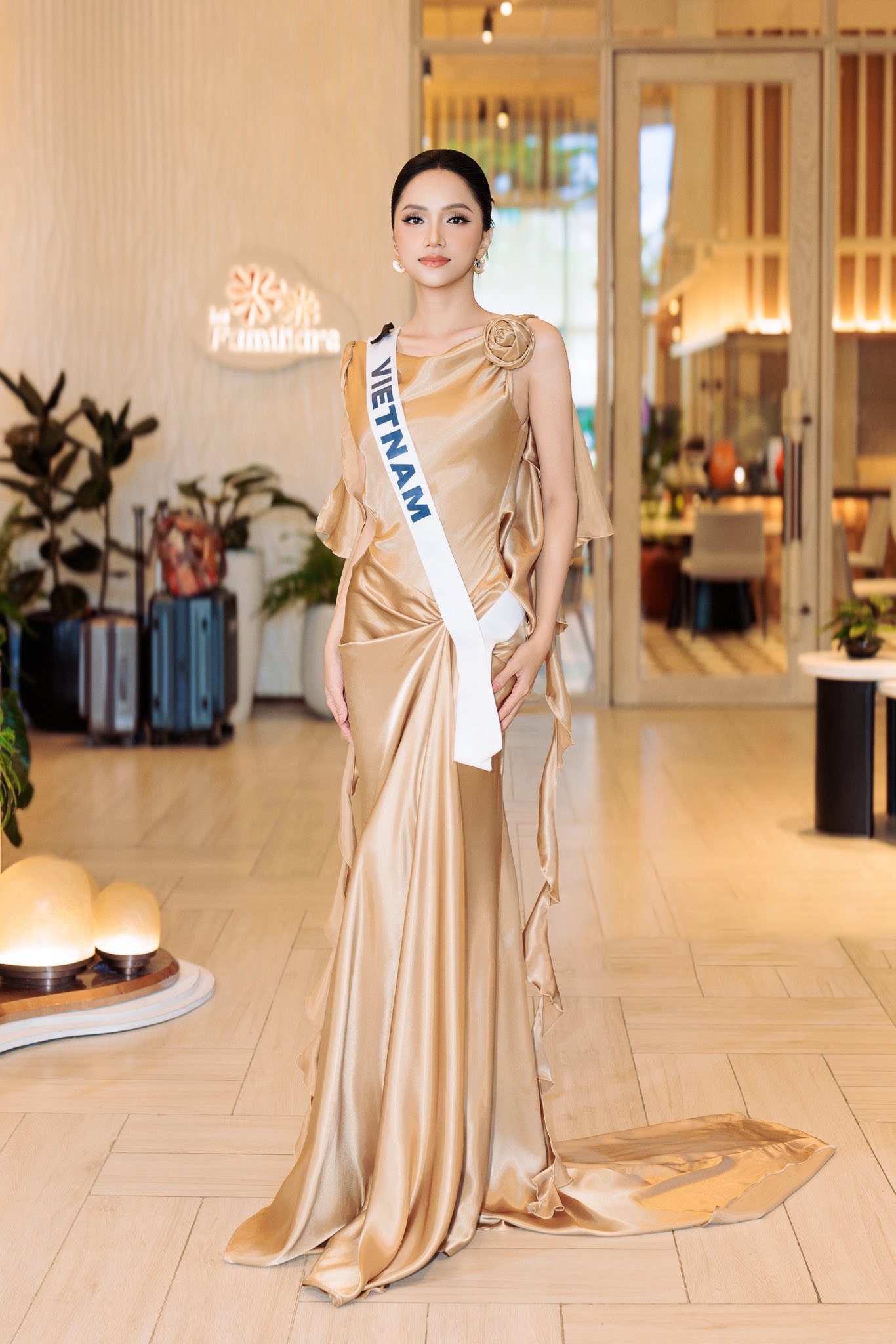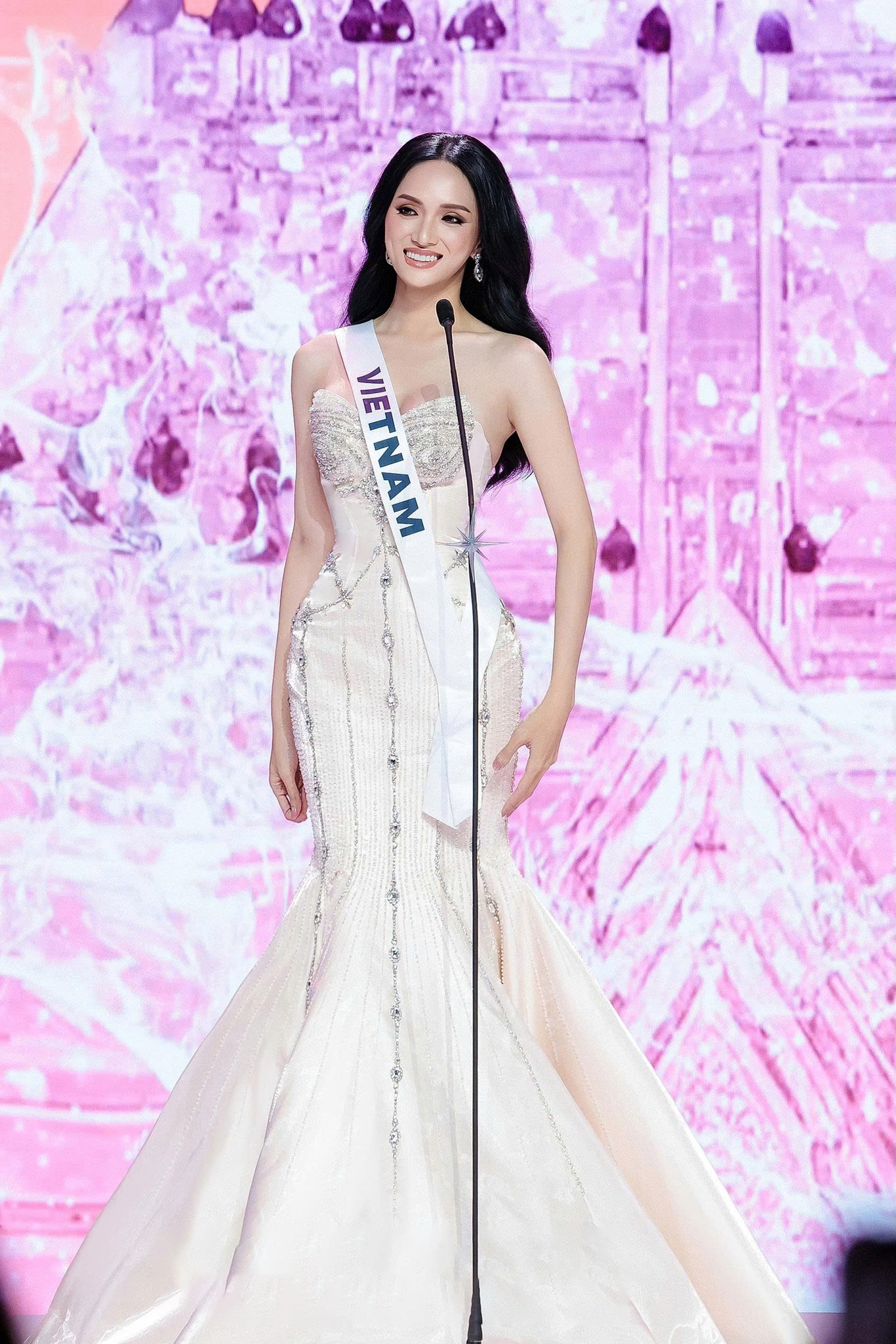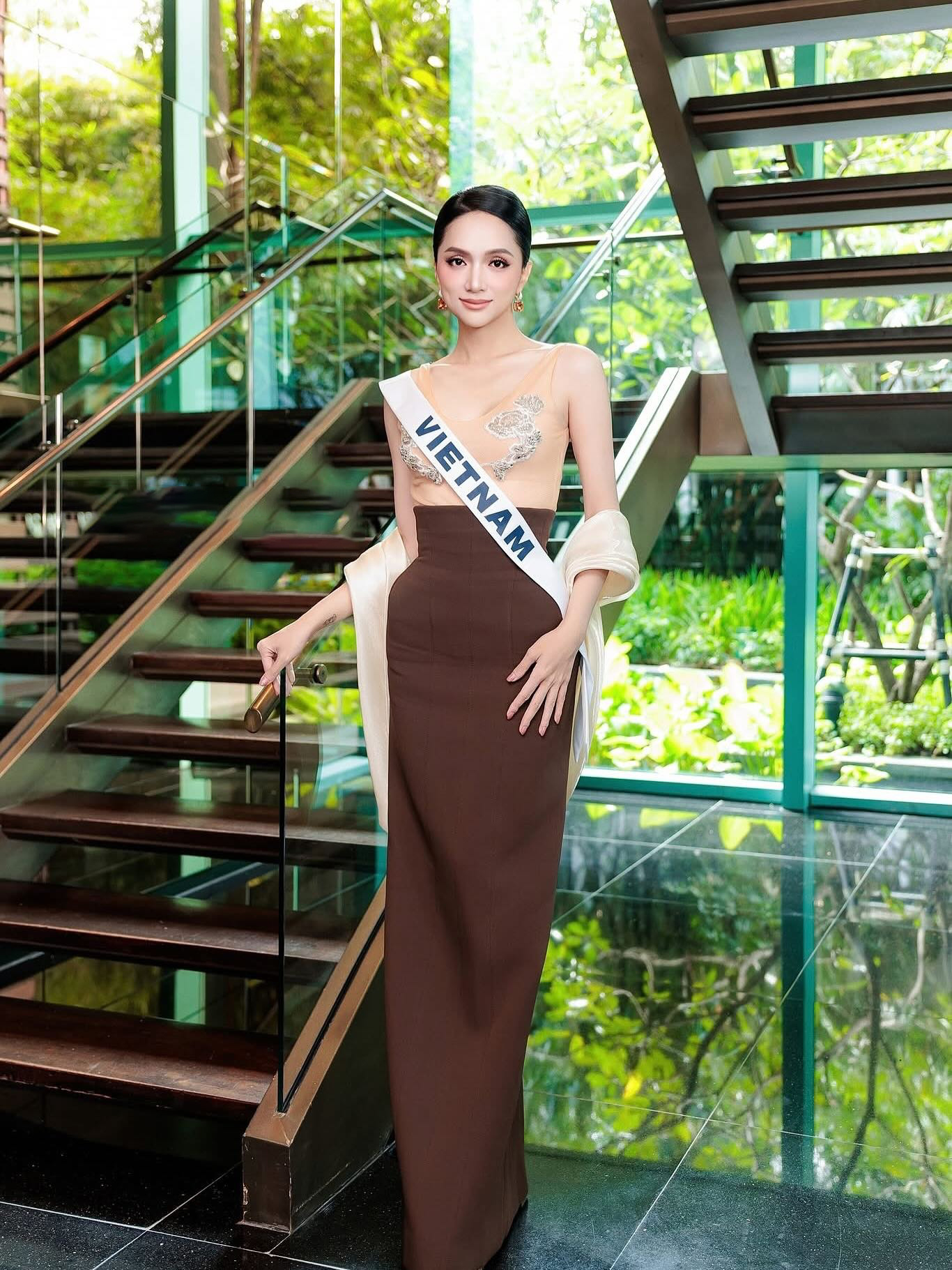 Stylist Le Minh Ngoc revealed that he and his team spent one month preparing 60 designs, along with numerous accessories, shoes, and sandals, for Huong Giang to wear at the competition. He prioritized party gowns that highlighted her figure while maintaining sophistication. To enhance her overall elegance, the beauty queen used handbags from Dior, Louis Vuitton, Hermes, and Ferragamo.