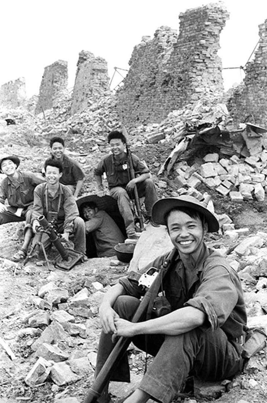 In the photo, soldiers wearing conical hats, holding their rifles, smile amidst the ruins. Despite the fierce fighting, they maintain optimism and faith in victory. A post featuring the photo on a journalist's fanpage received over 27,000 interactions. In the comments, many expressed gratitude to the previous generation who sacrificed their youth on the battlefield, contributing to the nation's independence.