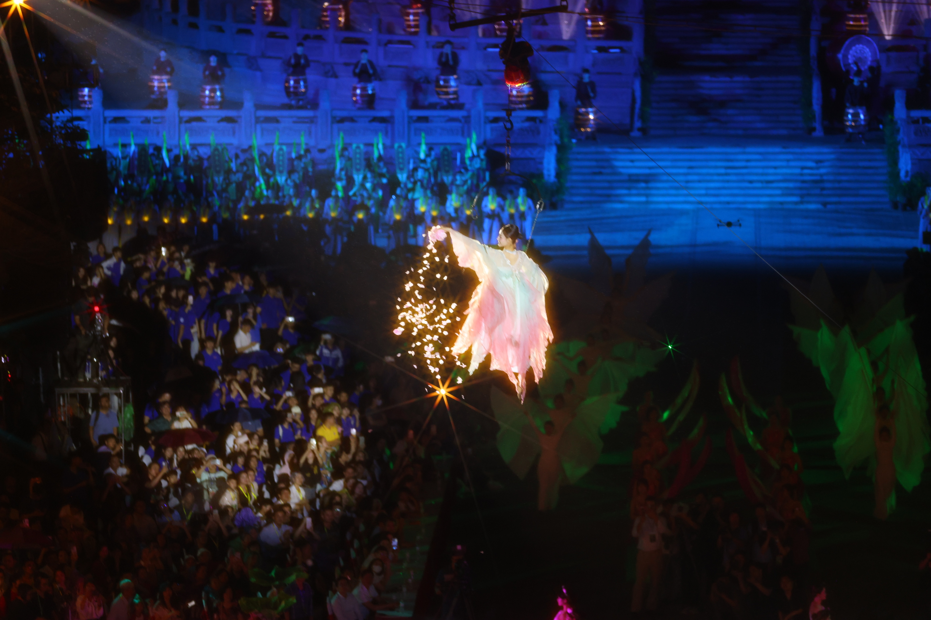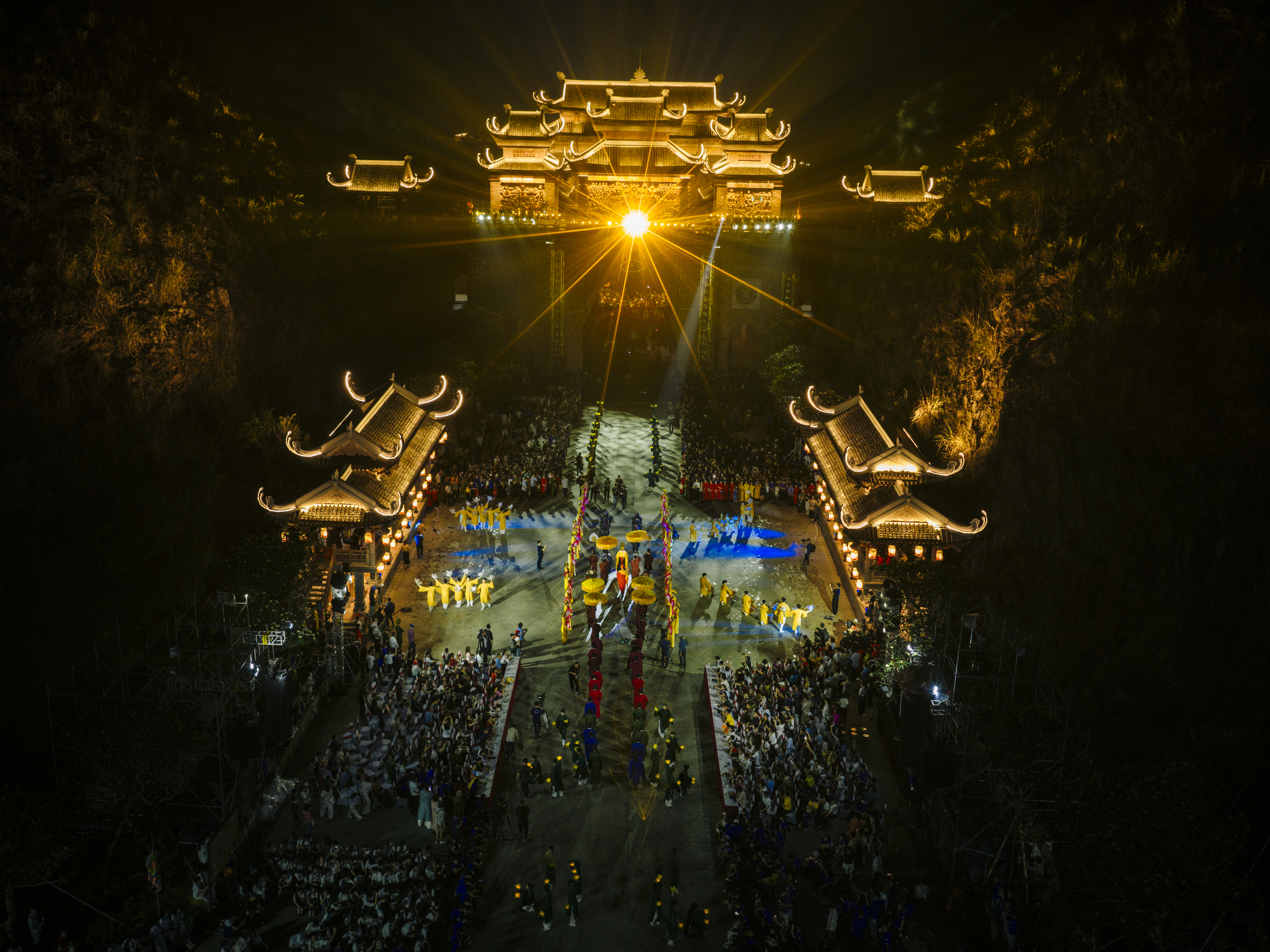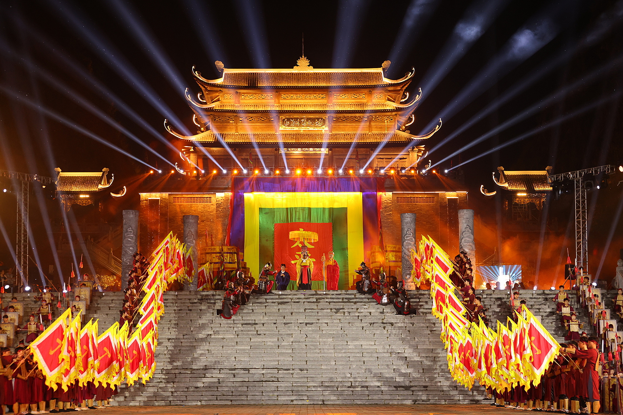 Attendees experienced two distinct stages at the event. The first stage recreated a prehistoric space within the mountain and depicted a drill by the ancient Hoa Lu army. The second stage immersed viewers in ceremonial rituals, including a dragon palanquin procession and the heaven offering ceremony.