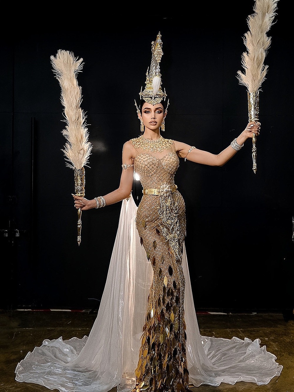 On previous Miss Universe Thailand stages, Veena has shared stories of being bullied as a child for being "mixed-race" and having a different appearance. From that, she learned how to cope to become stronger, realized the value of self-love, and ignored the scrutiny.