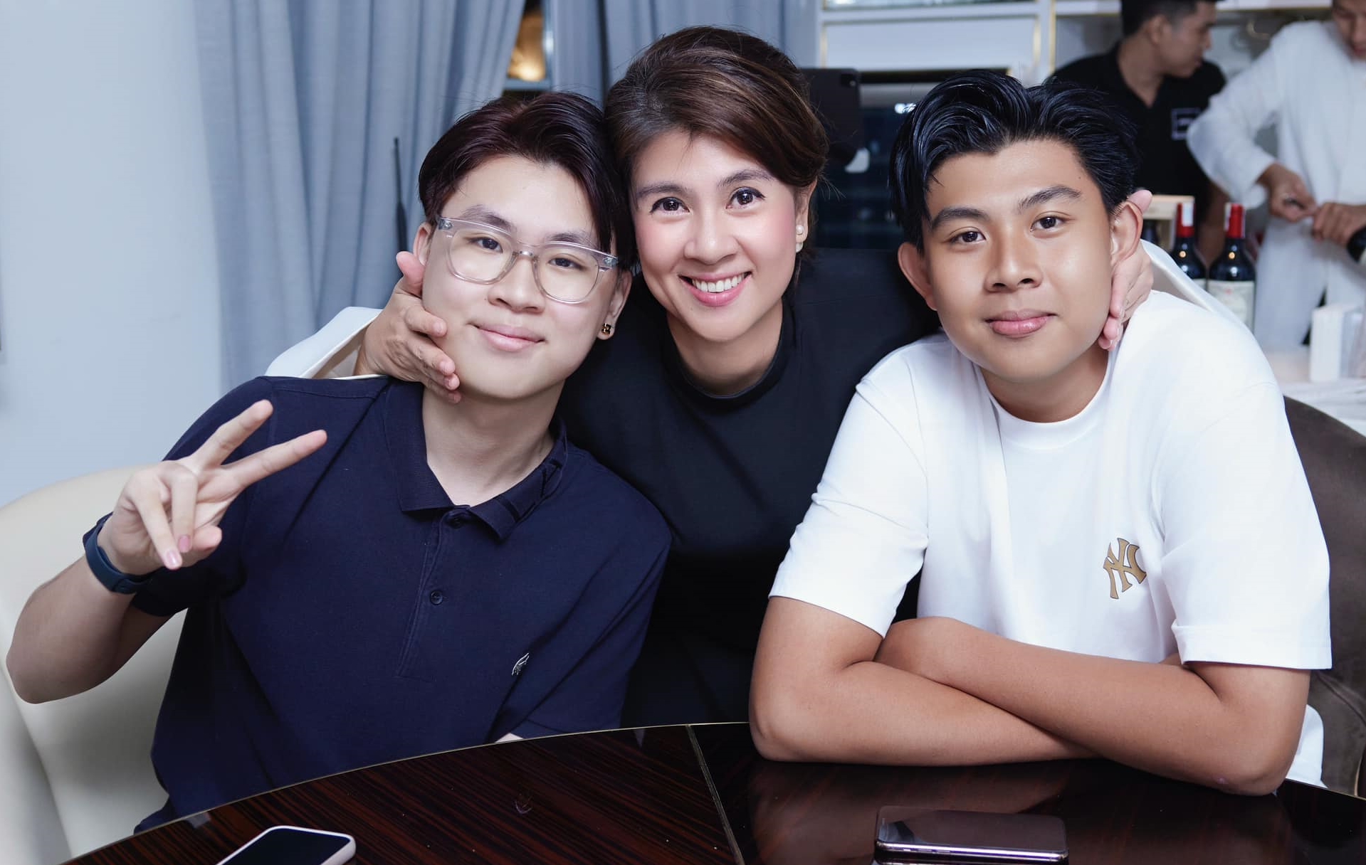 Kim Thu said both her sons had growth spurts during puberty, sometimes surprising her with how quickly they developed. "There are times I wear 10 cm high heels and still look small next to my son," the actress said.