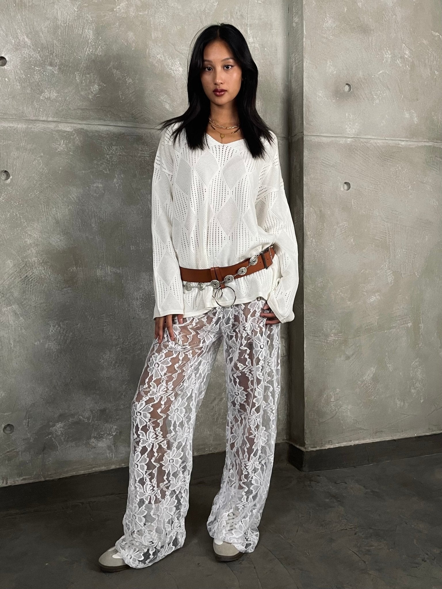 According to WWW, many people have commented on social media about this pant style. Most compare them to pajama pants, criticizing the design as unflattering and lacking elegance. Some argue the sheerness makes them more difficult to wear and even more revealing than sleepwear. Others support the trend, commenting that lace pants look classic, sexy, and offer a fresh perspective. Photo: Pinterest |
