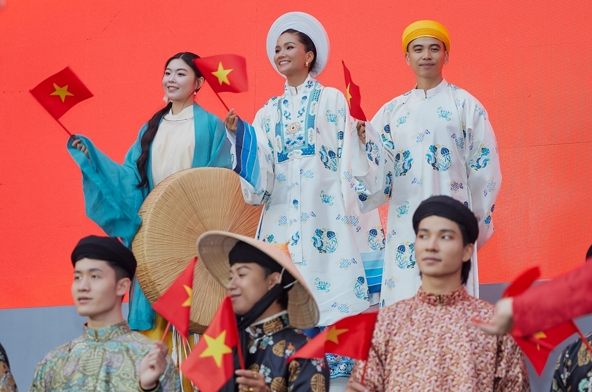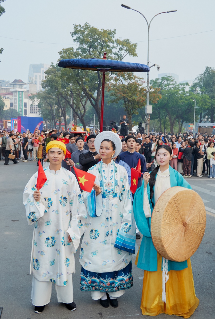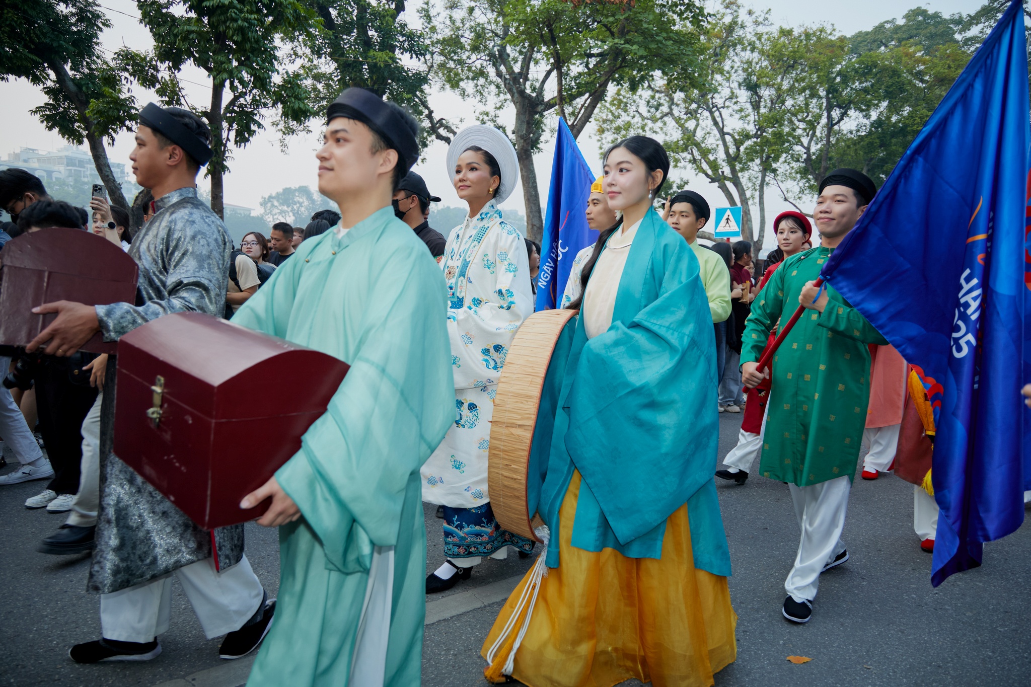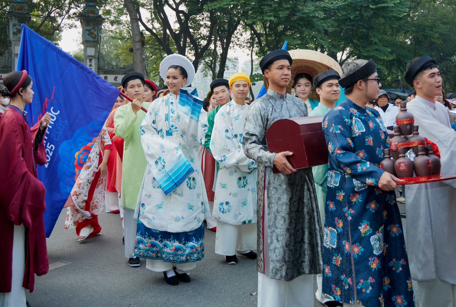 Dressed in traditional attire, participants paraded through the streets around Ho Guom, then attended a ceremony at the main stage. The procession also recreated Vietnamese weddings through different eras.
