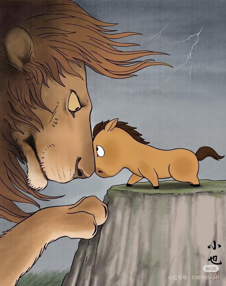 Illustration of Ma Xiao Ye confronting a lion. Photo: Douyin Huang Sanshui |