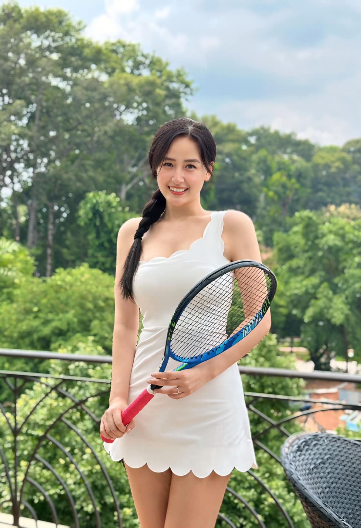 Mai Phuong Thuy's energetic look while engaging in sports.