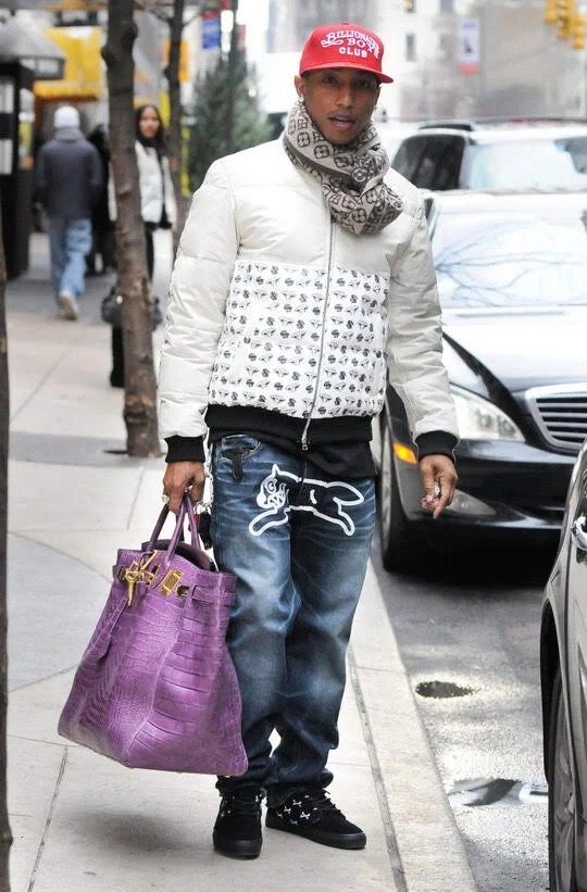 In addition to the brown version, Pharrell Williams also owns a similar purple one with gold hardware. His collection also includes numerous Chanel and Louis Vuitton bags. Photo: Backgrid