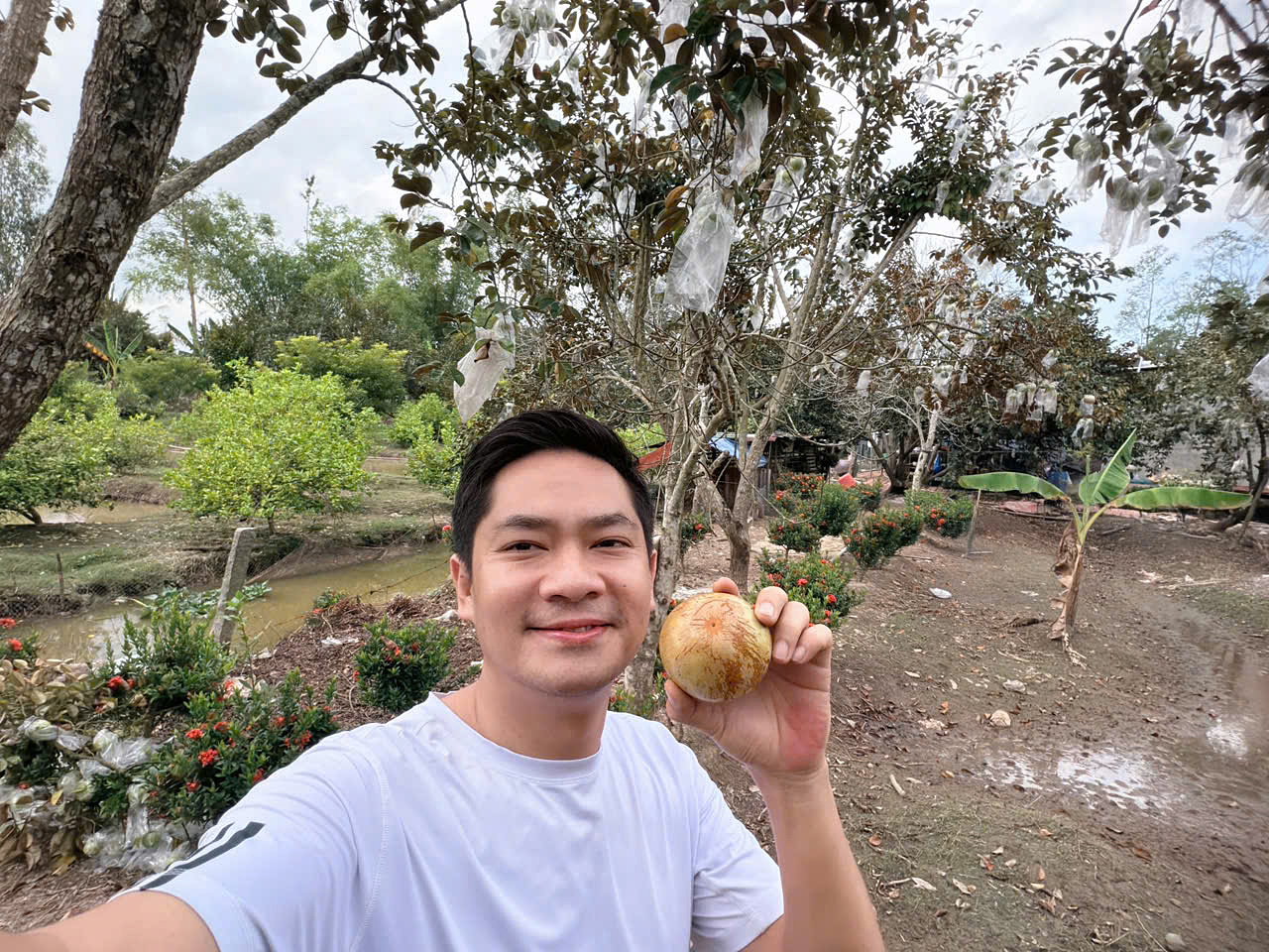 Born into a farming family and regularly exposed to fields, Minh Luan understands how to care for fruit trees. At the start of the rainy season, he returns home to plant, fertilize, and learn pest prevention methods for his trees. When his work schedule in the city is busy, he visits his garden once every few months.