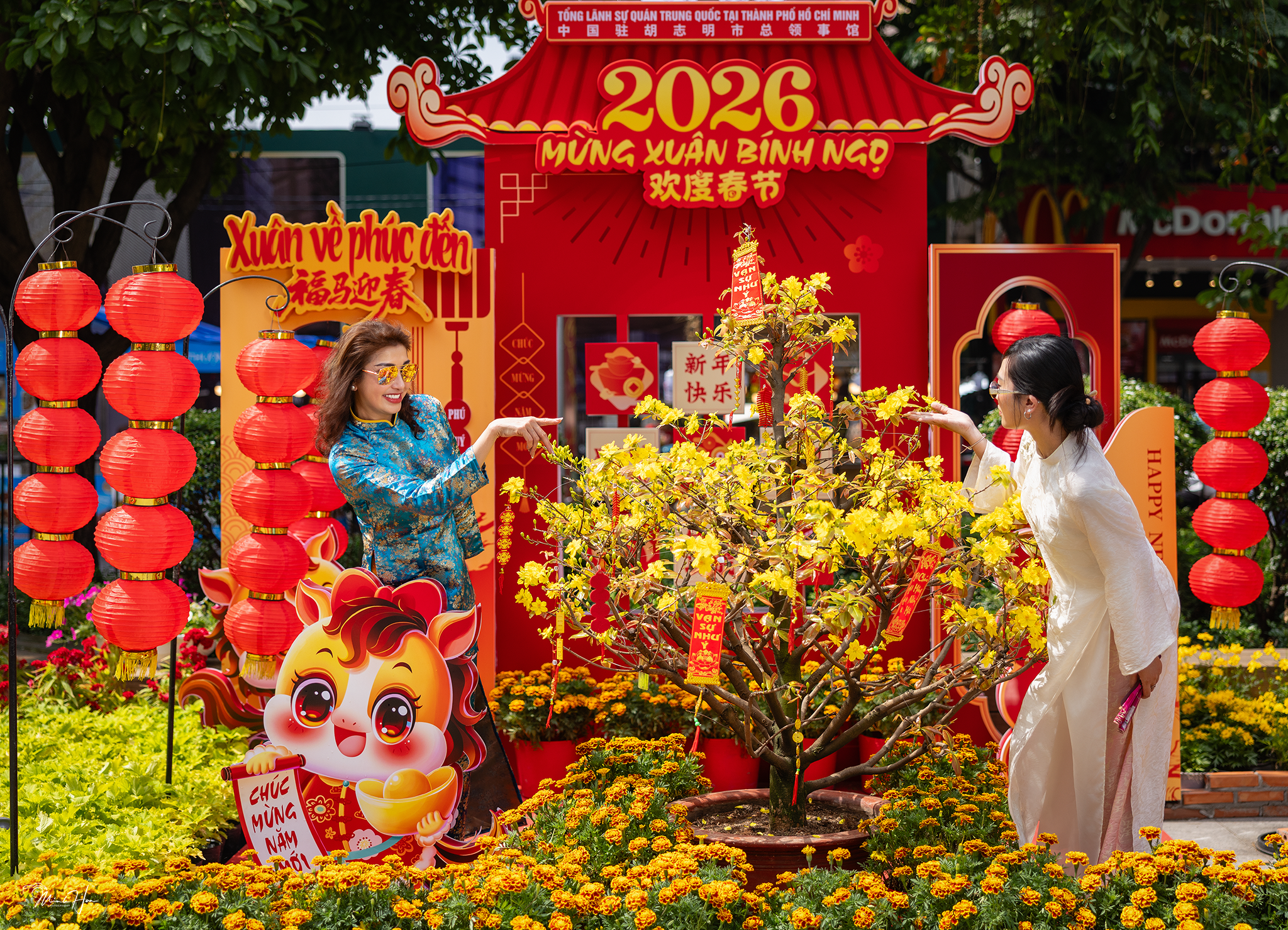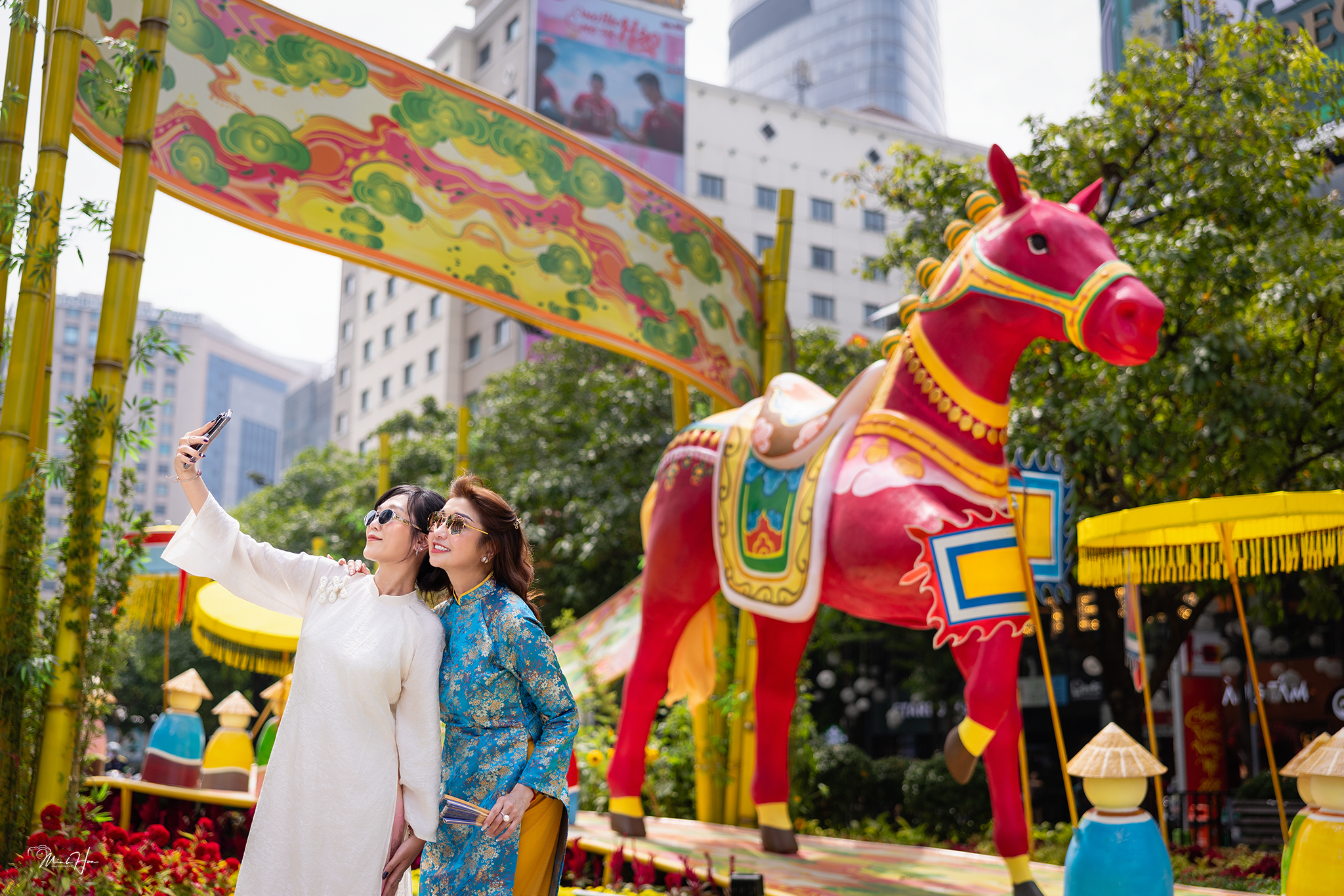Ly Thu Thao was impressed by the design and decoration of Nguyen Hue flower street. She particularly noted the mascot figures reflecting national culture, such as the grand scene of the "nine-maned horse", inspired by the Son Tinh - Thuy Tinh legend. "Vietnamese people, wherever they are, always look to their roots", she remarked.