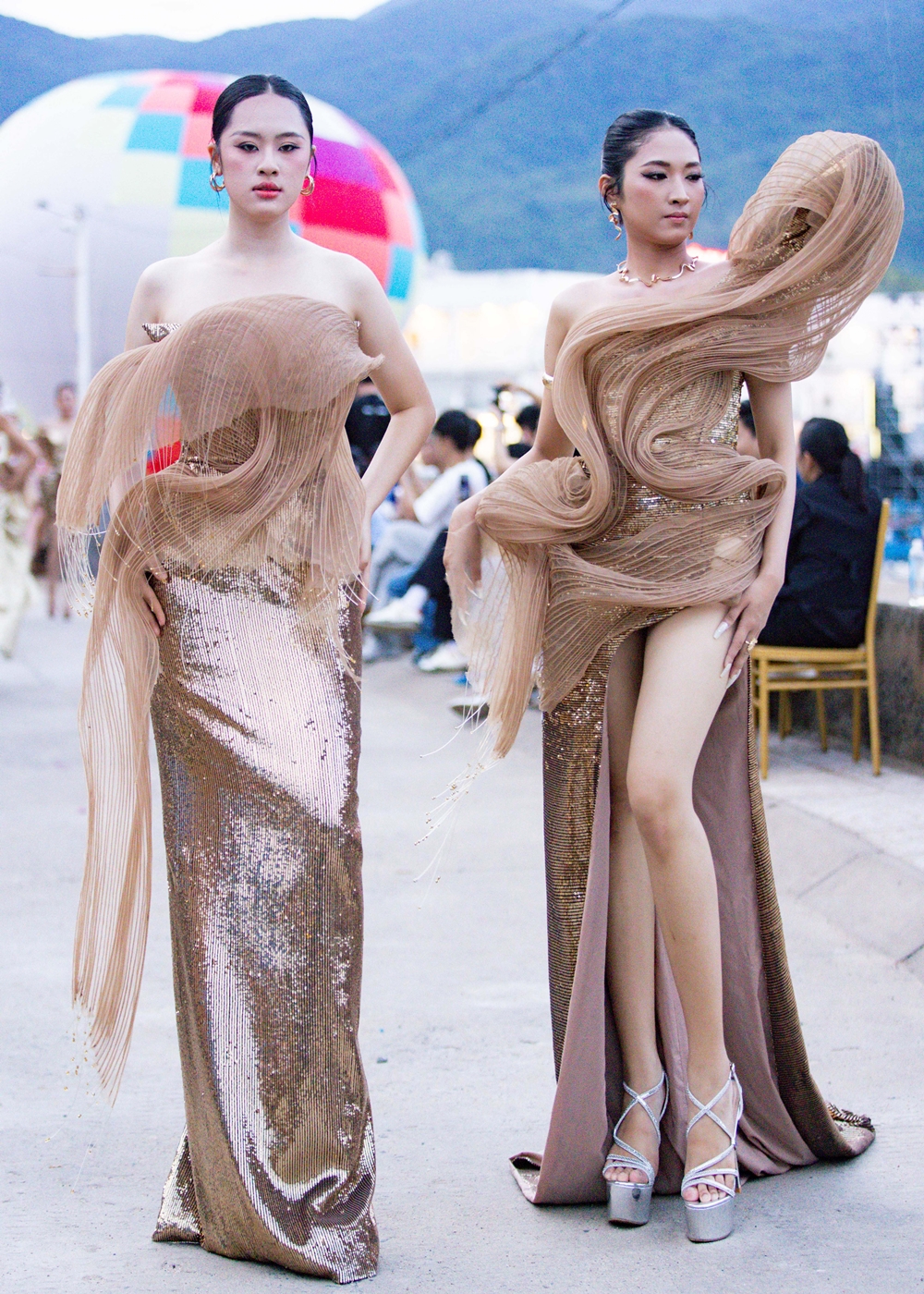 The designer chose the Miss Universe Vietnam 2022 to close his "Em - Ky Uc" (Em - Memories) collection at the Miss Ocean Vietnam 2025 fashion show on 17/9. The runway was set on the shores of Vinh Hy Bay, often called "Ha Long Bay of central Vietnam." |