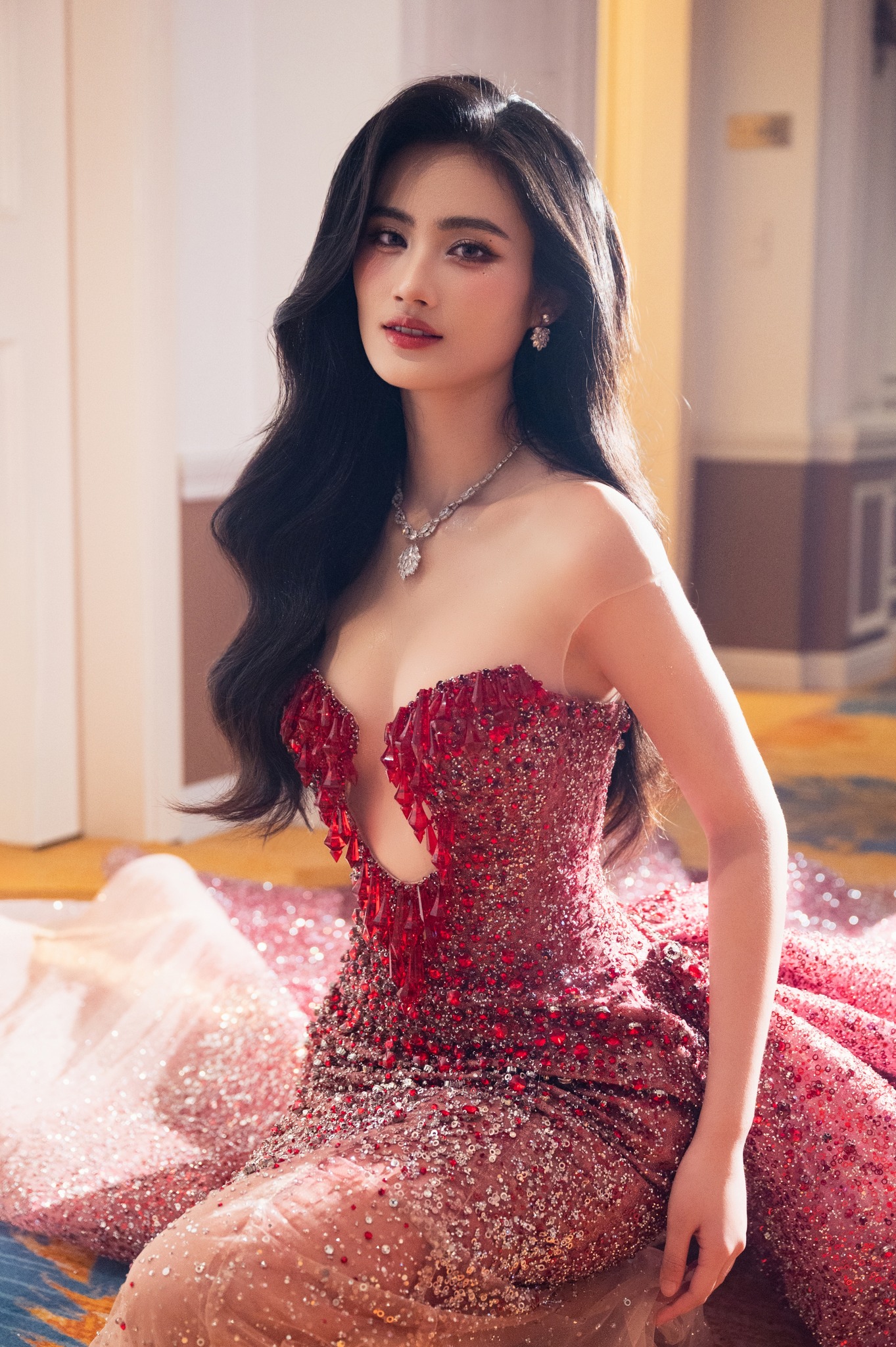 Y Nhi appeared as a princess in a stone-embellished gown for her photoshoot. She returned to Australia on 22/12 to resume her studies after accompanying the Miss World Vietnam 2025 organizing committee as the reigning miss. Away from home, Y Nhi called to wish her family and colleagues a Merry Christmas, also extending greetings to her audience via social media.