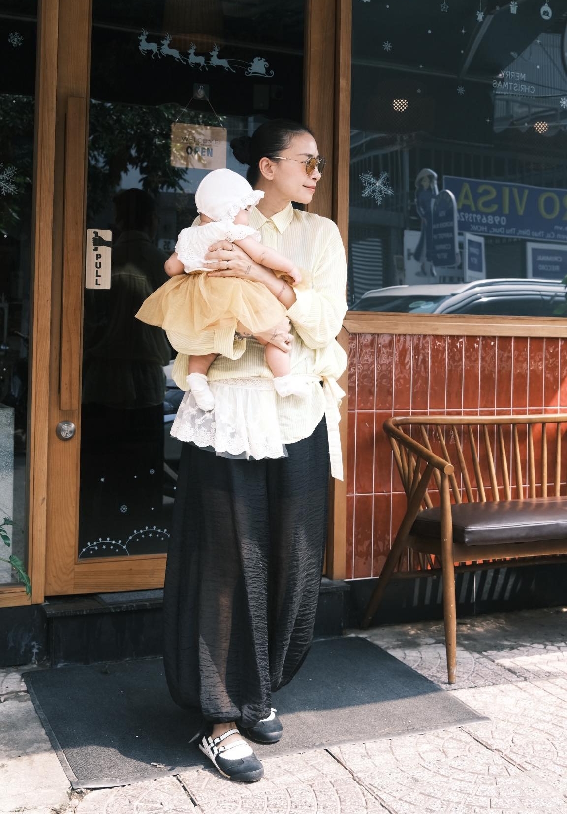 As baby Gao transitions to solid foods and becomes more active, Ngo Thanh Van is gradually returning to work, opting for loose-fitting designs made from thin, breathable fabrics like cotton and linen. These choices offer comfort and ease of movement, essential for caring for her child, while also discreetly concealing her figure as she works towards her pre-pregnancy shape.