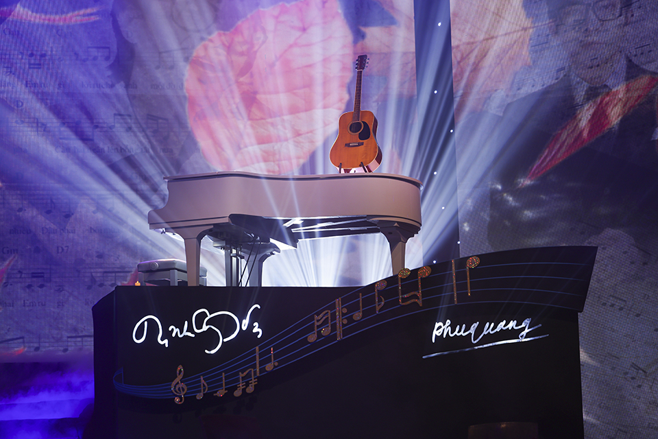The stage design featured a piano, associated with Phu Quang, and a guitar, associated with Trinh Cong Son. *Photo: Manh Nguyen*