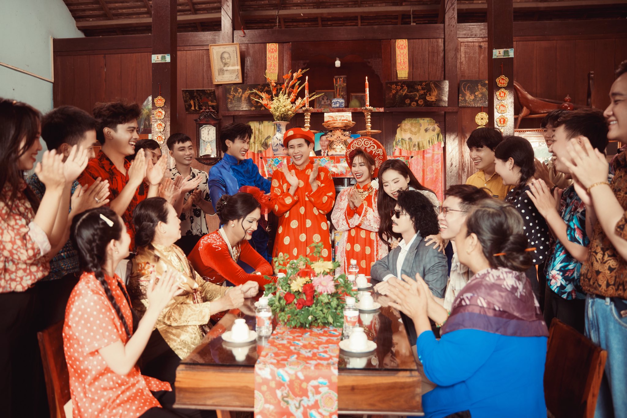 The cast recreates the atmosphere of a Mekong Delta wedding in the music video. |