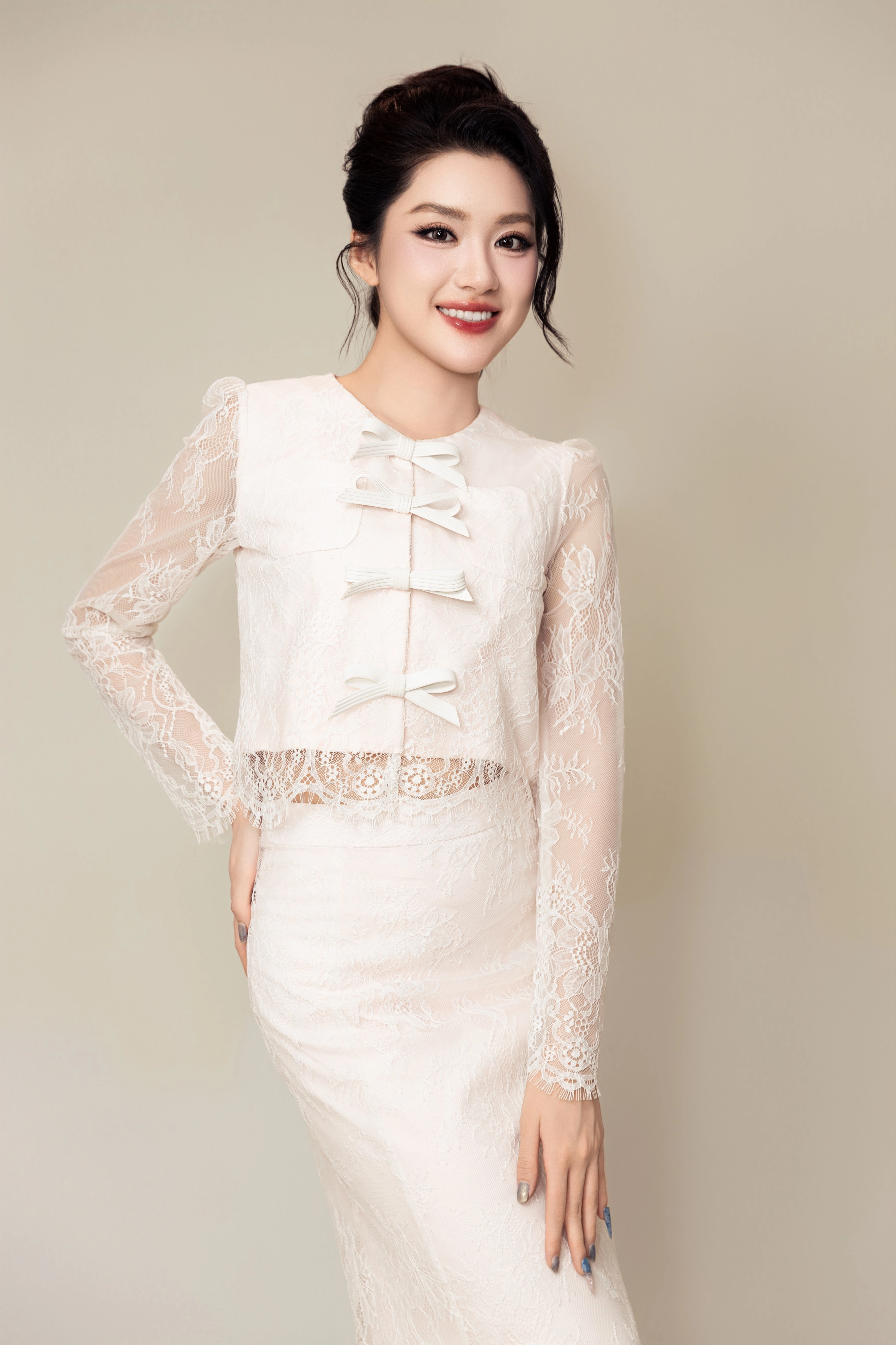 Outfits with lace appliques, floral embellishments, and bows added detail to Phuong Oanh's appearance.