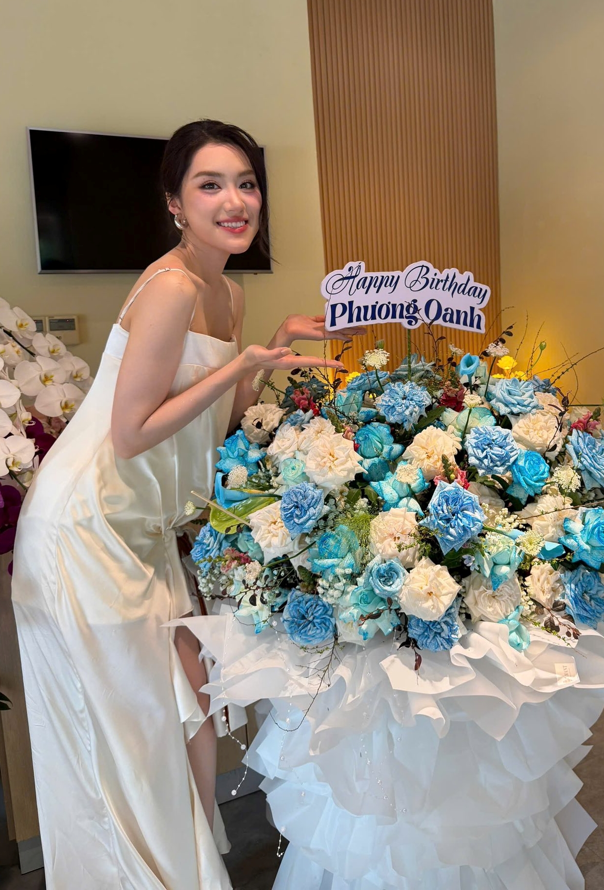 On 4/4, the beauty celebrated her 23rd birthday, one week after winning the Miss World Vietnam competition. Phuong Oanh said, "My birthday this year holds much meaning as I just passed a major milestone. I appreciate the audience's love and will strive to fulfill my role well."