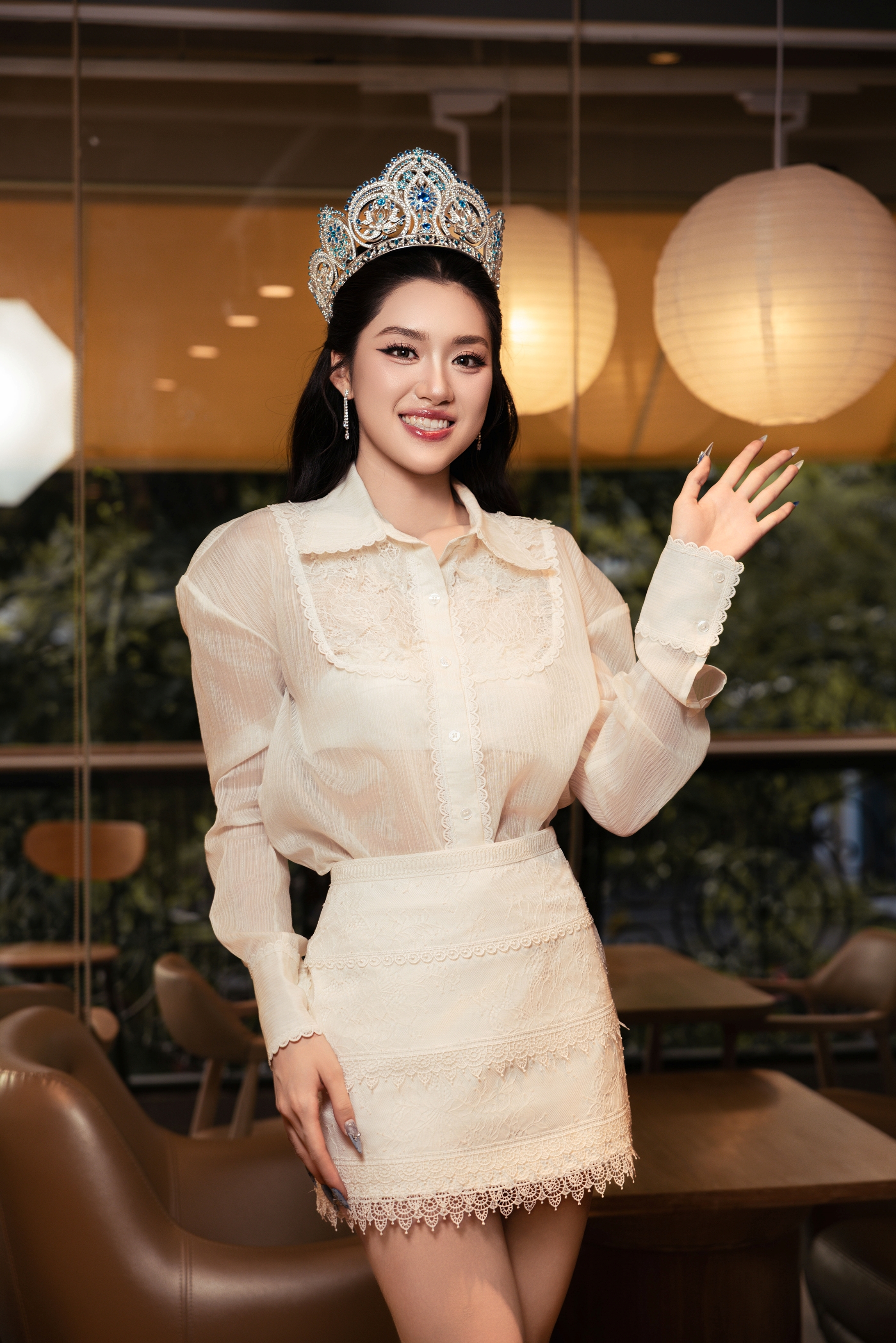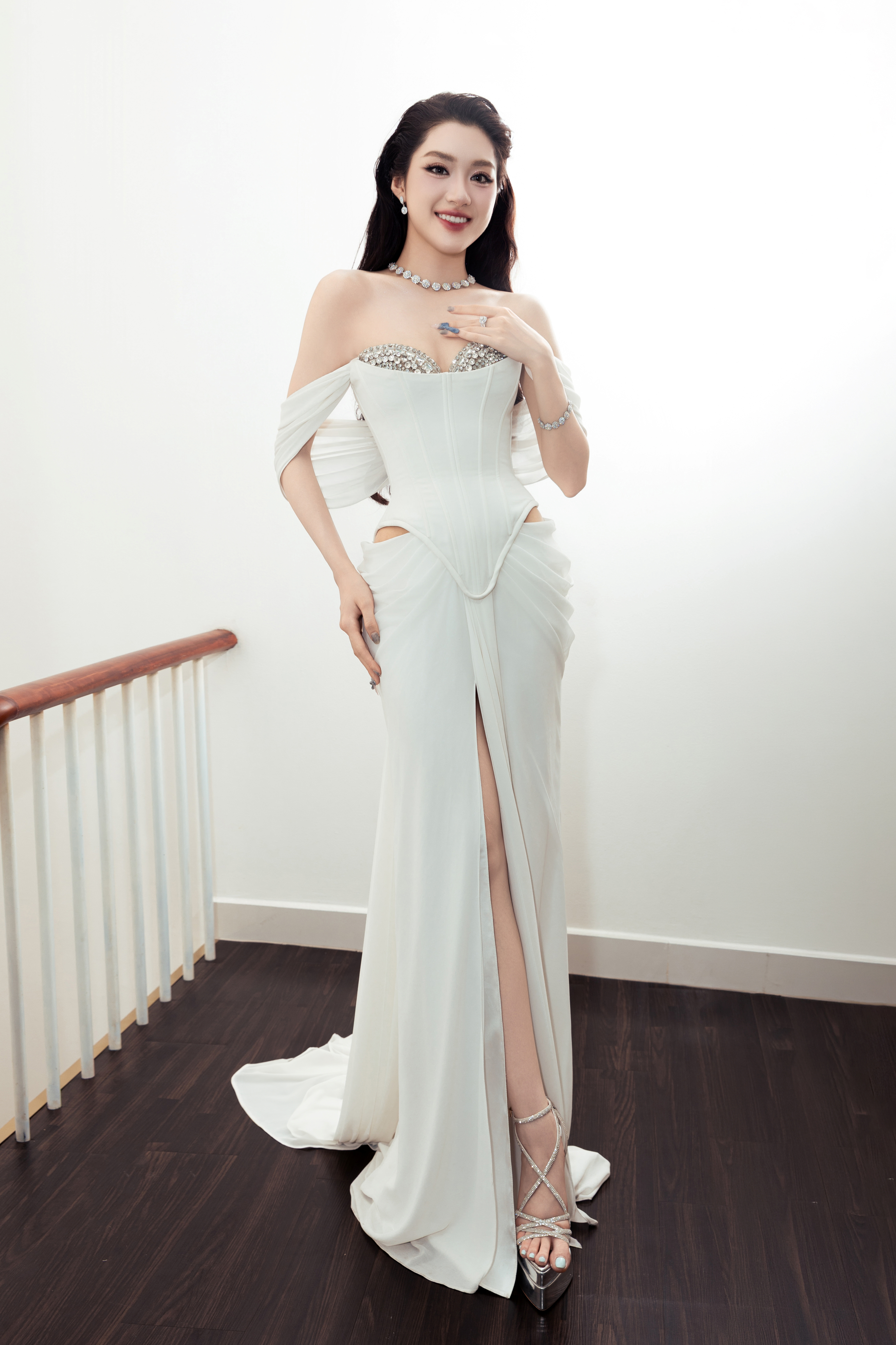 Stylist Bui The Loc collaborated with designers and brands to ensure the new miss had a polished appearance. He prioritized monochromatic outfits, mainly in white, black, and beige, aligning with Phuong Oanh's preferences.