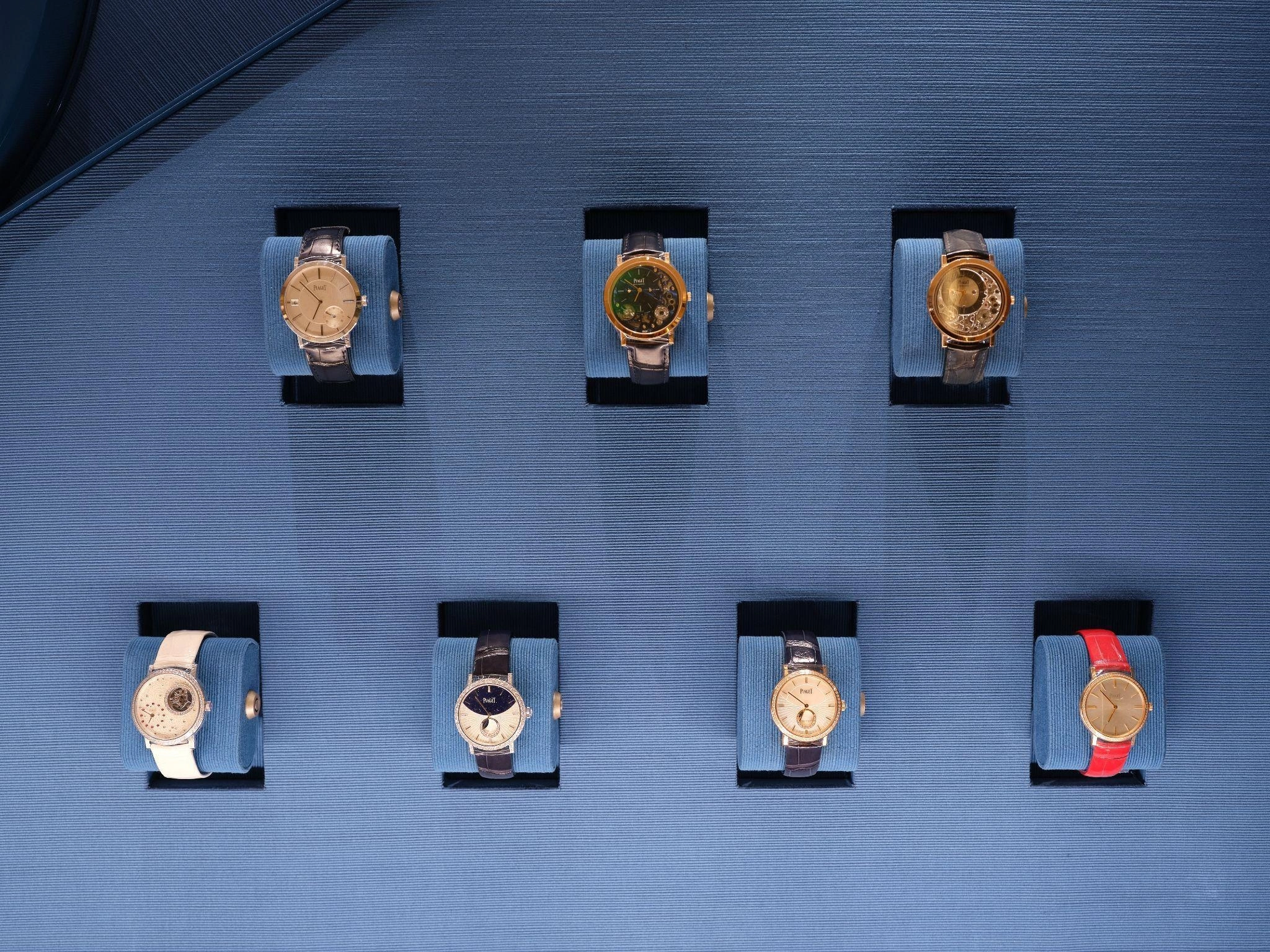 One of the store's most prominent areas is the "Elegance of High Watchmaking" wall. This space celebrates iconic timepieces that have shaped the history of global watchmaking: the luxurious sports watch line Piaget Polo and the ultra-thin Altiplano creations. |