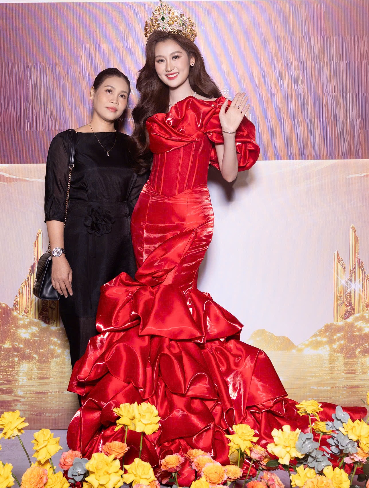 Que Anh expressed her deep appreciation for the crown, considering it a treasured memento of her youth. She immediately embraced the designer's concept. The team spent over a month creating the gown, meticulously cutting, shaping, and hand-embellishing it.