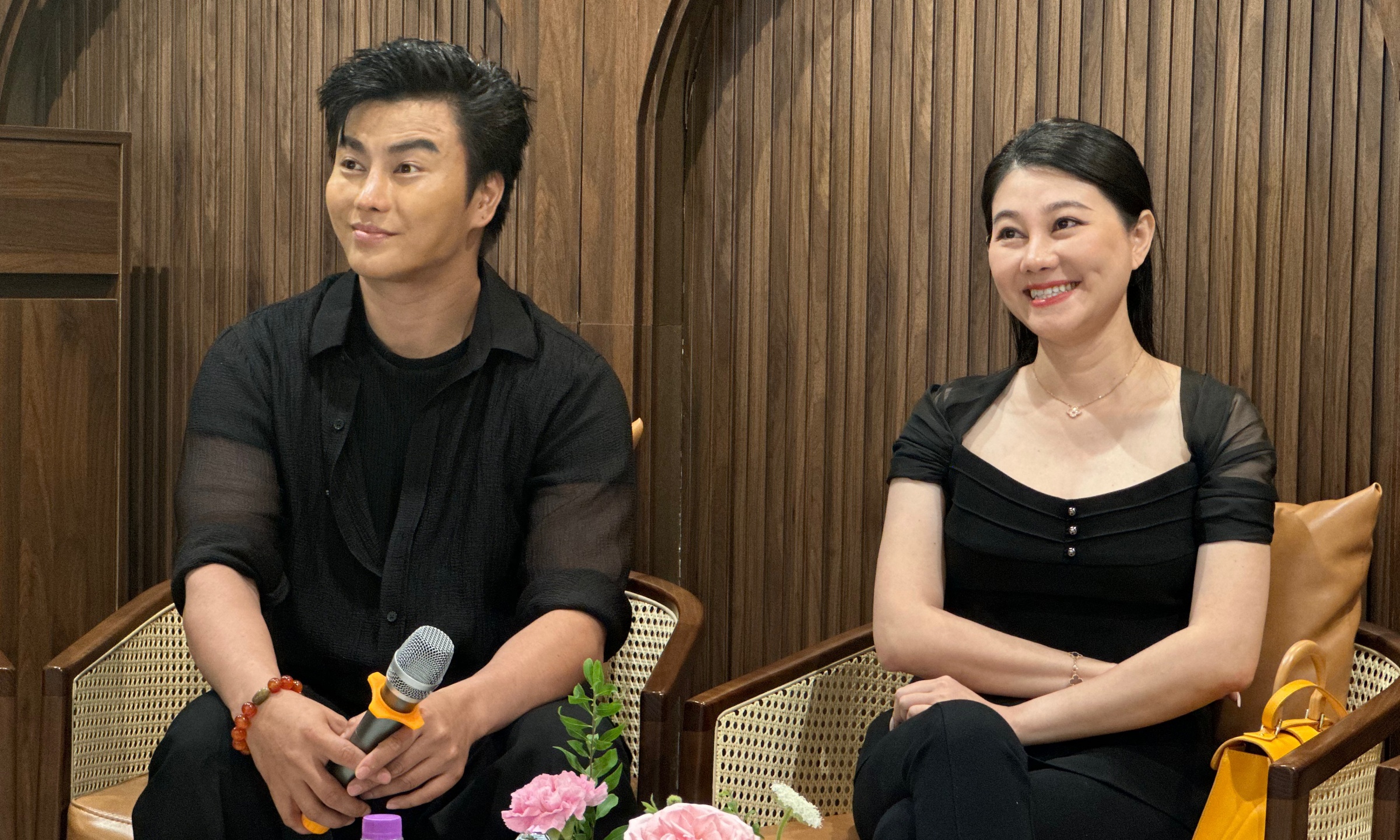 Actors Vo Minh Lam and Que Tran at a press conference about the project, 28/8 in Ho Chi Minh City. Photo: Tan Cao |