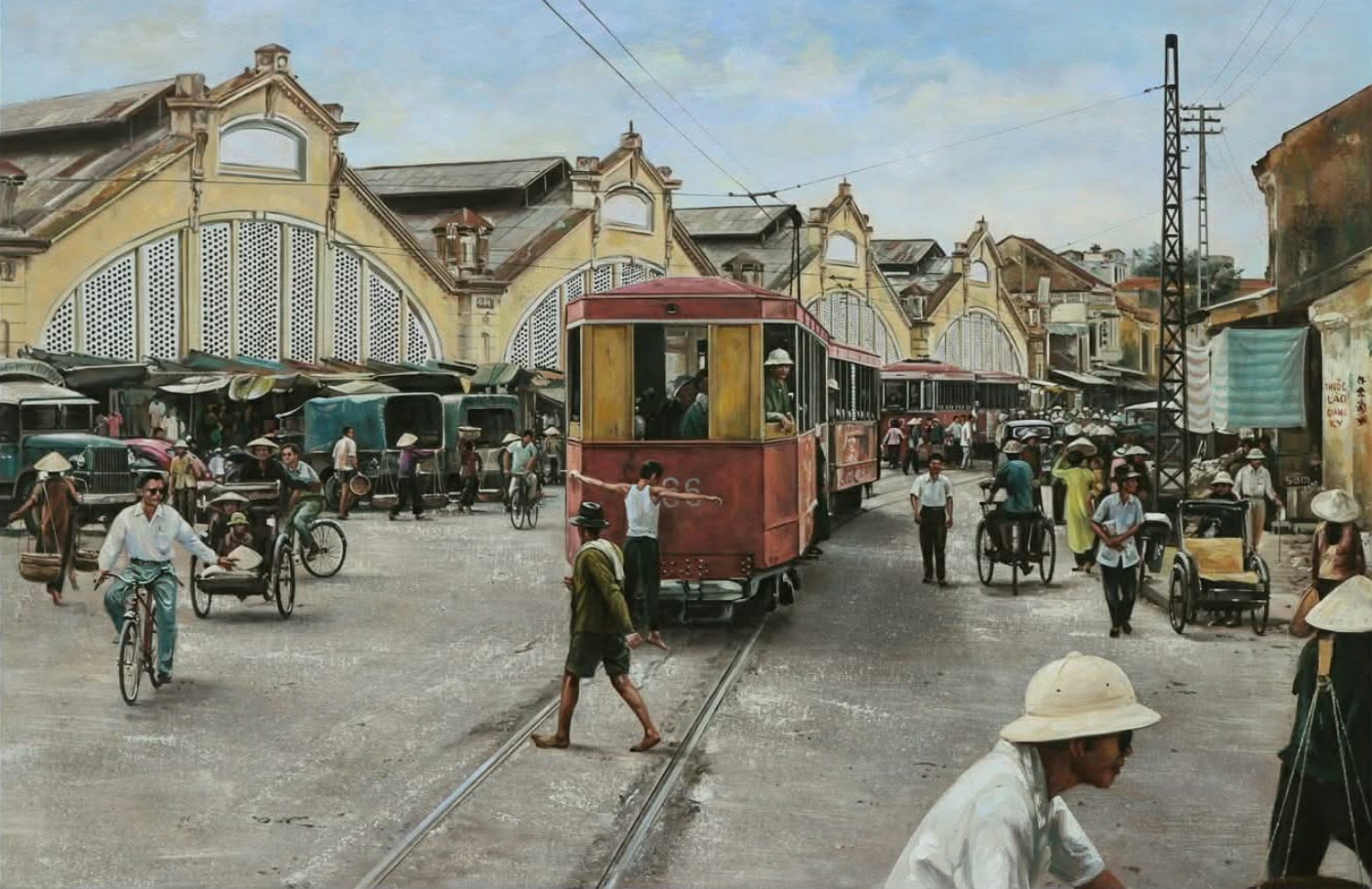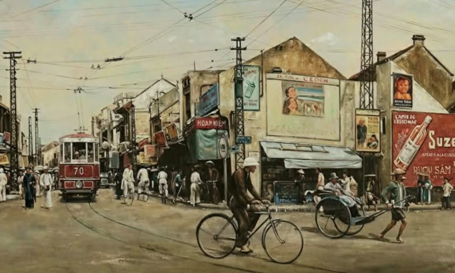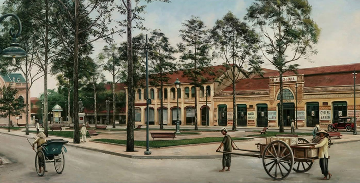 In addition to Saigon, the artist has painted many scenes of Hanoi, such as Nha Tho street in the early 20th century.
