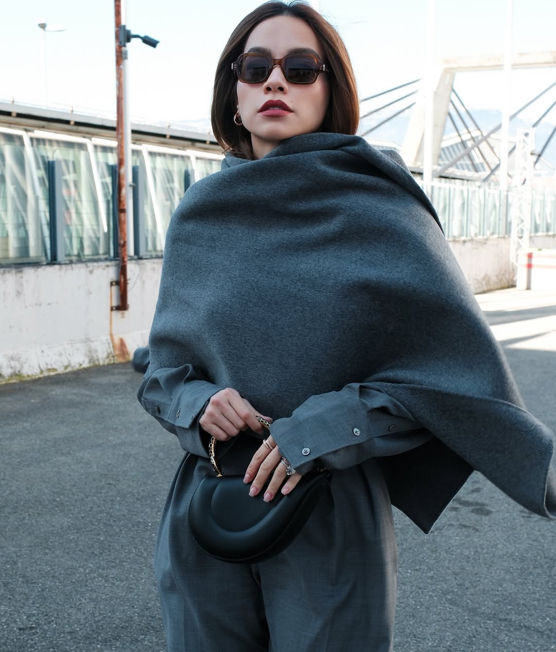 In 4, during a trip to Switzerland, singer Ho Ngoc Ha also embraced this new trend with a gray outfit featuring an oversized wool scarf. Photo: Provided by character