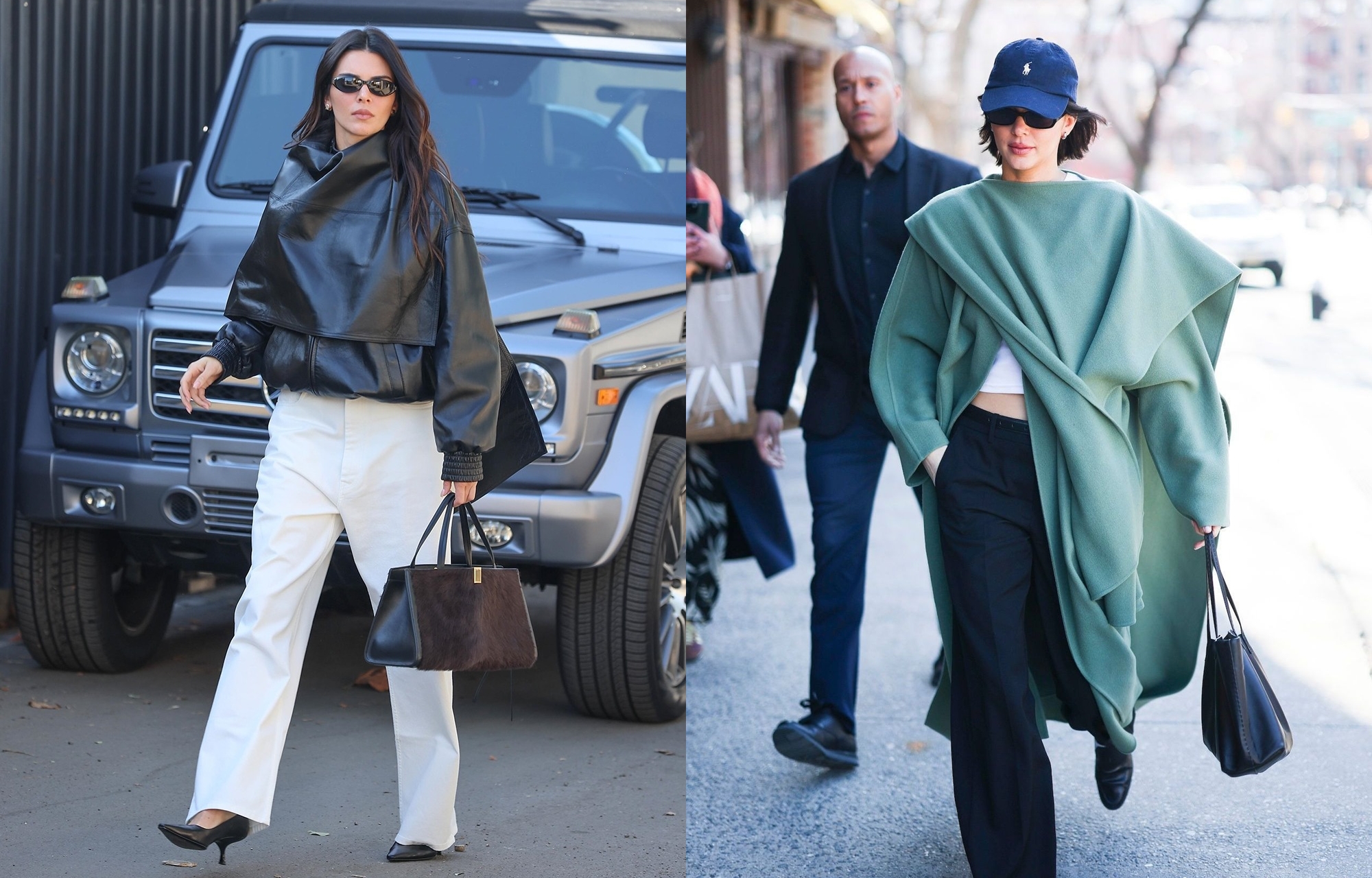 Supermodel Kendall Jenner is a devoted fan of this style. On one occasion during dinner, she wore a brown leather trench coat, paired with tights and pointed-toe shoes. Photo: GC Images