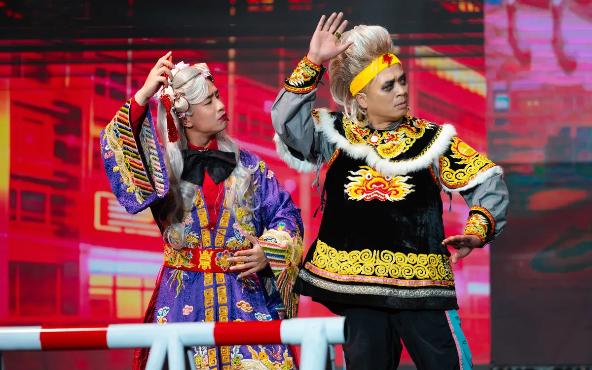 Nevertheless, over nearly three hours, Spring Square attempted to deliver humor. Artists Tien Minh (as Thien Loi) and Duy Nam (as Tao Dau - a character combining Bac Dau and Nam Tao) appeared in the initial segment, discussing why the Kitchen Gods would not be reporting to the Jade Emperor this year. The two characters talked about pickleball, the sport that gained popularity last year, and the installation of AI cameras. The voice of Ngoc Hoang Quoc Khanh was heard via a recording, introducing a new celestial invention: the "cay loc" (wish tree), a communication channel with the public. The Jade Emperor stated he could read messages sent through the tree.