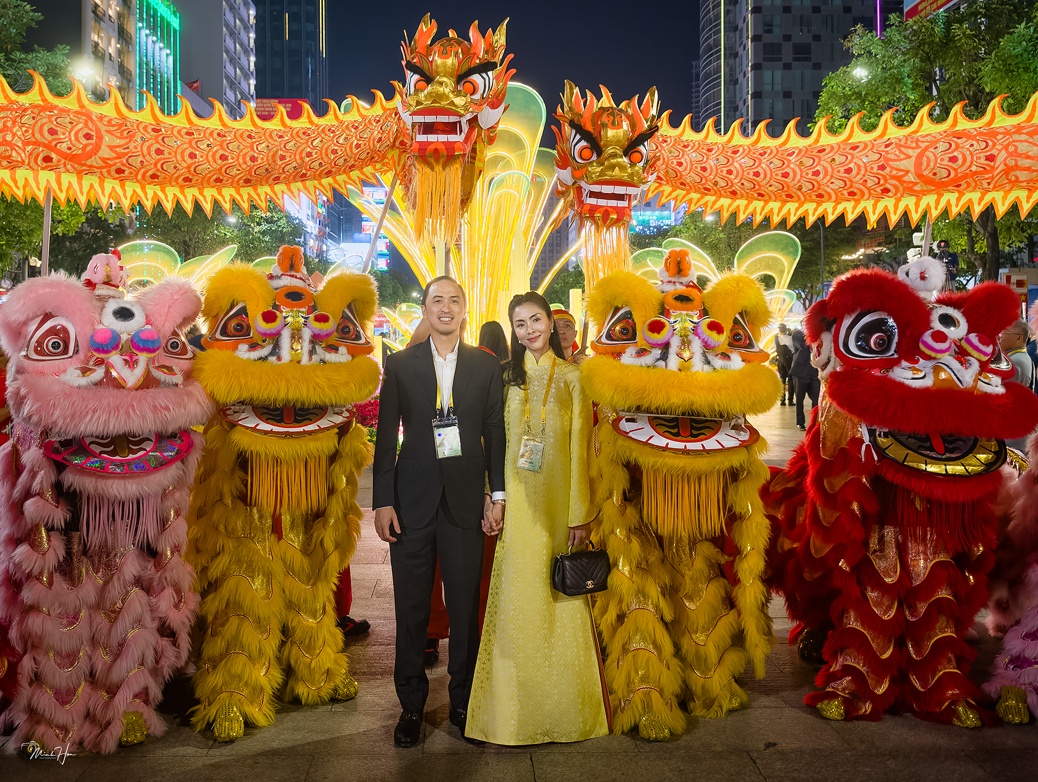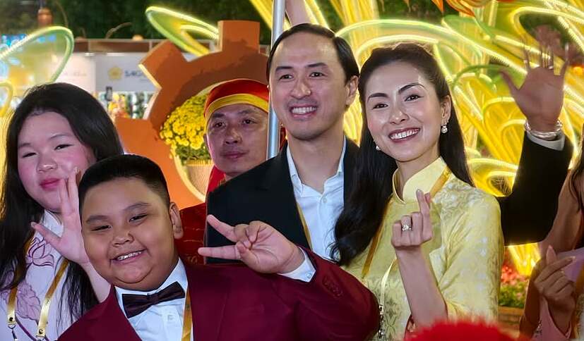 Tang Thanh Ha and her husband, businessman Louis Nguyen, were guests at the opening of Nguyen Hue flower street for Tet Nguyen Dan 2026, themed 'Spring Convergence - Steadfast Ascent'.