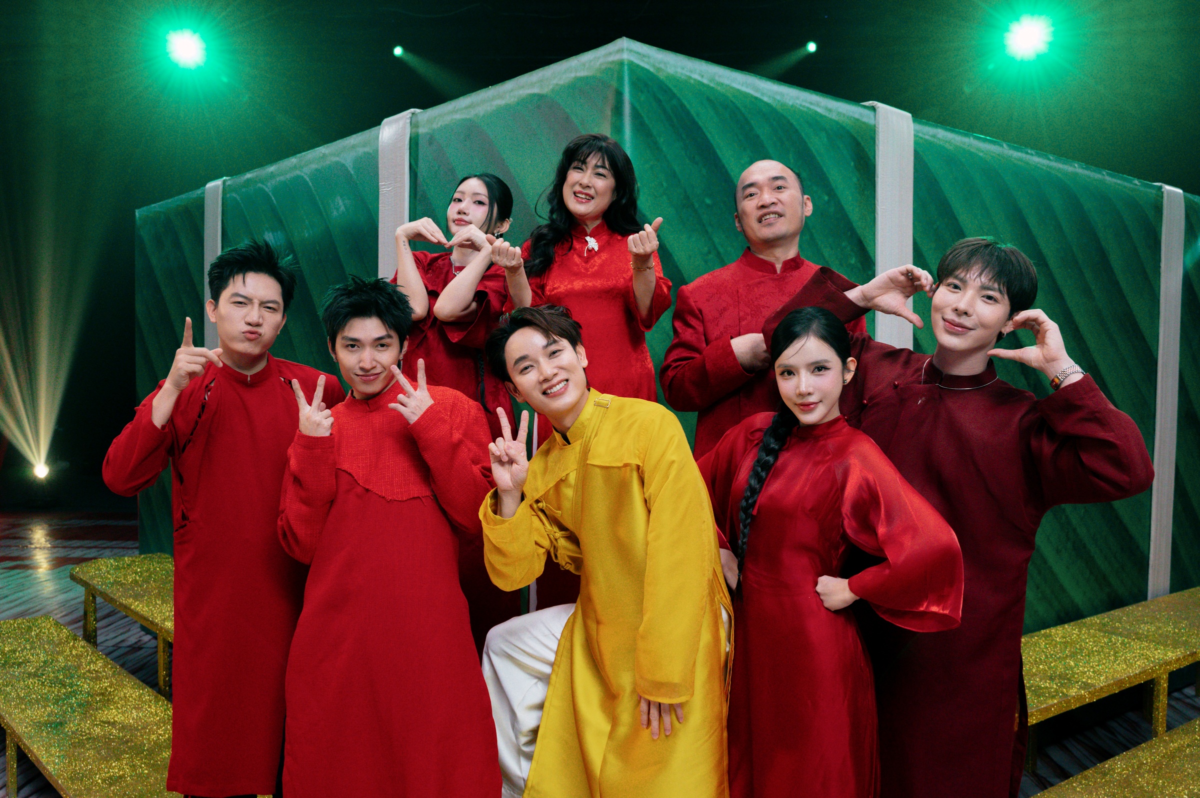 Senior artists and colleagues feature in Truc Nhan's Tet music video. From left in the front row are Anh Tu, Cody Nam Vo, Truc Nhan, LyLy, Erik; in the back row are Orange, Thanh Thuy, Tien Luat.