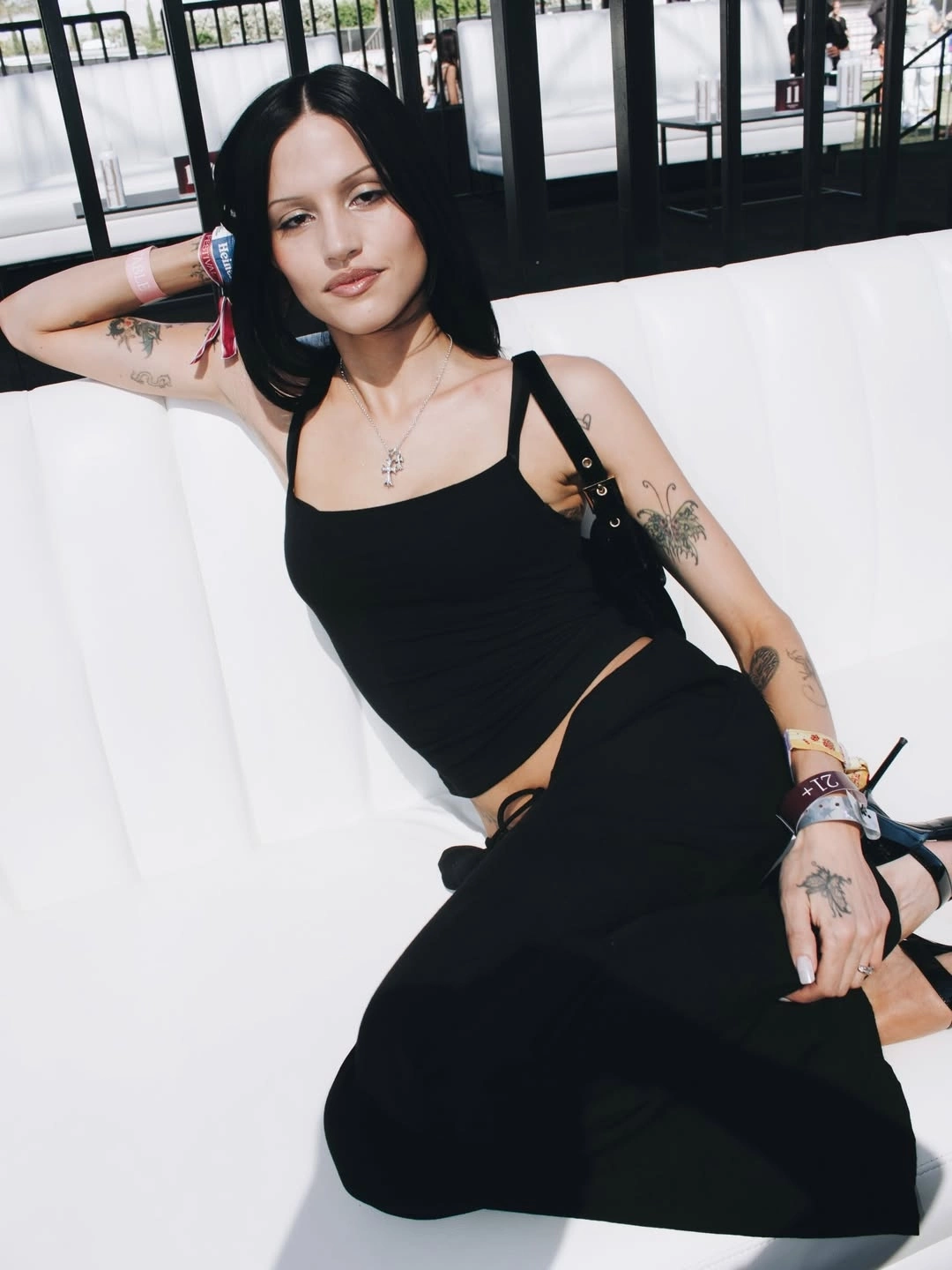 Model Gabbriette presented a 1990s-inspired look with a simple camisole and a shoulder bag. *Photo: Instagram Gabbriette.*