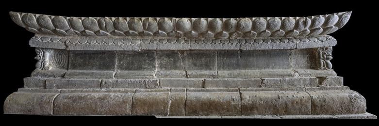 The altar features a multi-tiered structure, assembled from stone slabs arranged in a zigzag pattern and linked by dovetail joints, creating a stable and majestic form. Its surface is rough, slightly concave in a kite shape, with four corners gently rising. This design breaks from rigid squareness, lending a soft quality that distinguishes it from other altars made of stone, wood, terracotta, or bronze from various Vietnamese historical dynasties. While largely intact, a lotus petal on the right corner of the pedestal is broken, some stone slabs show horizontal cracks, and the bottom base is partly obscured due to past renovations that raised the Upper Sanctuary’s foundation.
