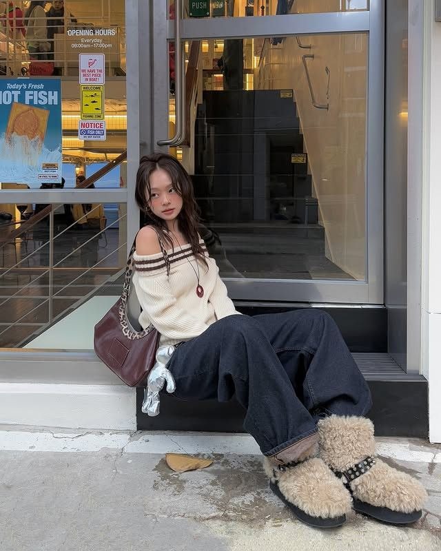 Sheepskin Ugg boots are excellent for warmth. A stylish way to wear them is with flared jeans, a leather jacket, and a matching furry hat. |