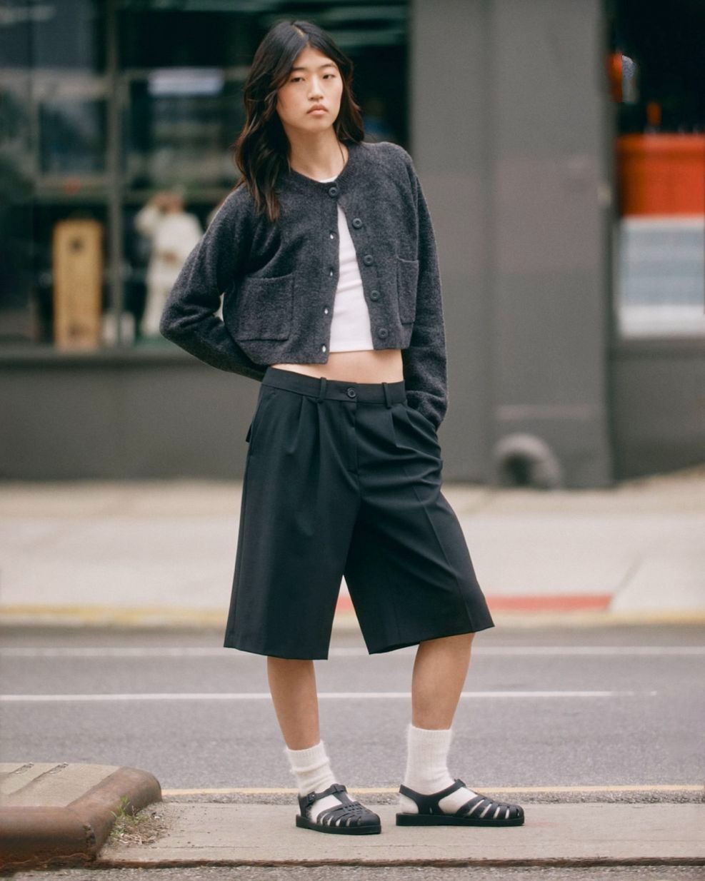 The easiest way to style is tonally. Add socks matching the color of your chunky sandals, paired with a mini skirt or denim shorts, a polo shirt or t-shirt, or a crop top to convey an energetic look. |