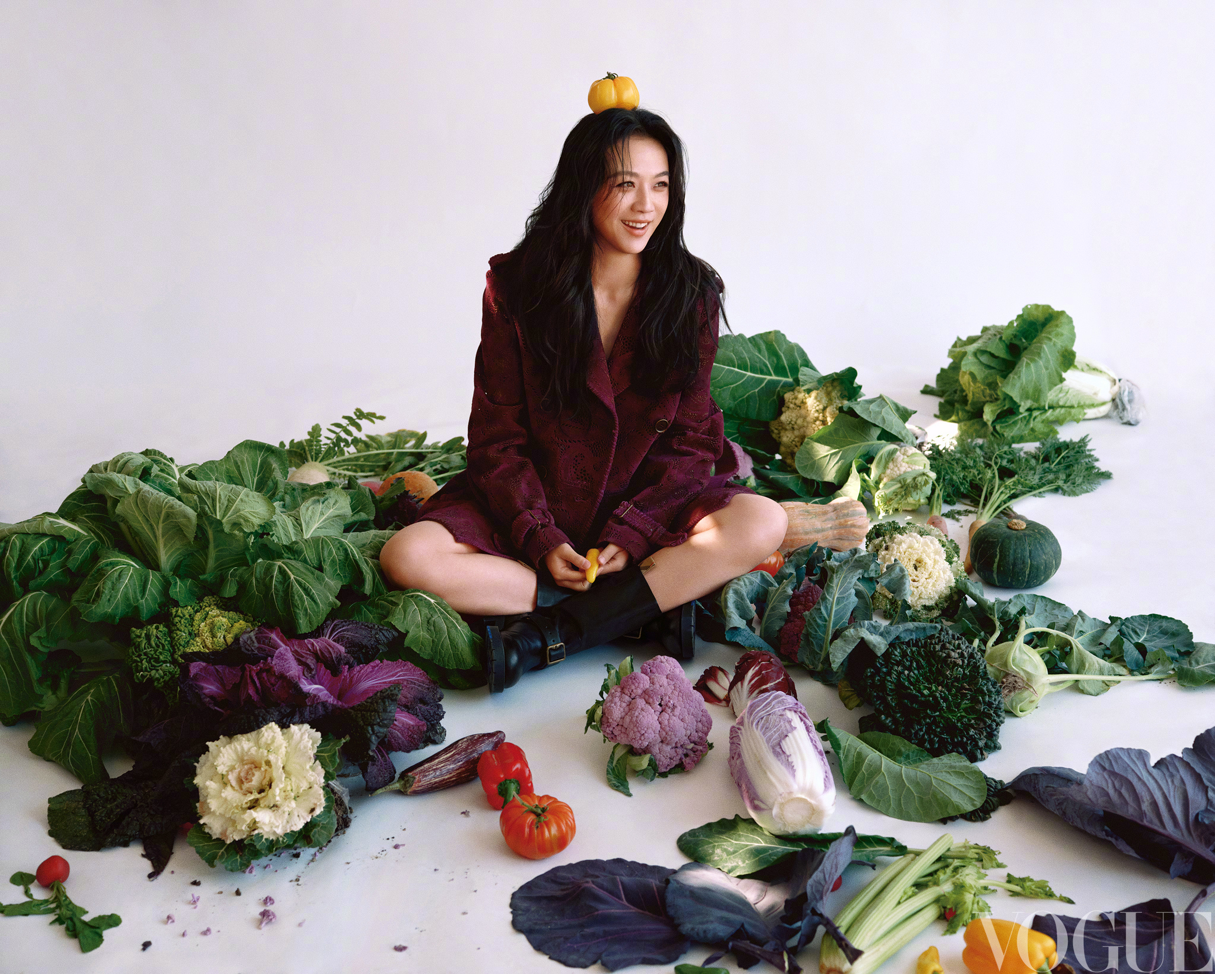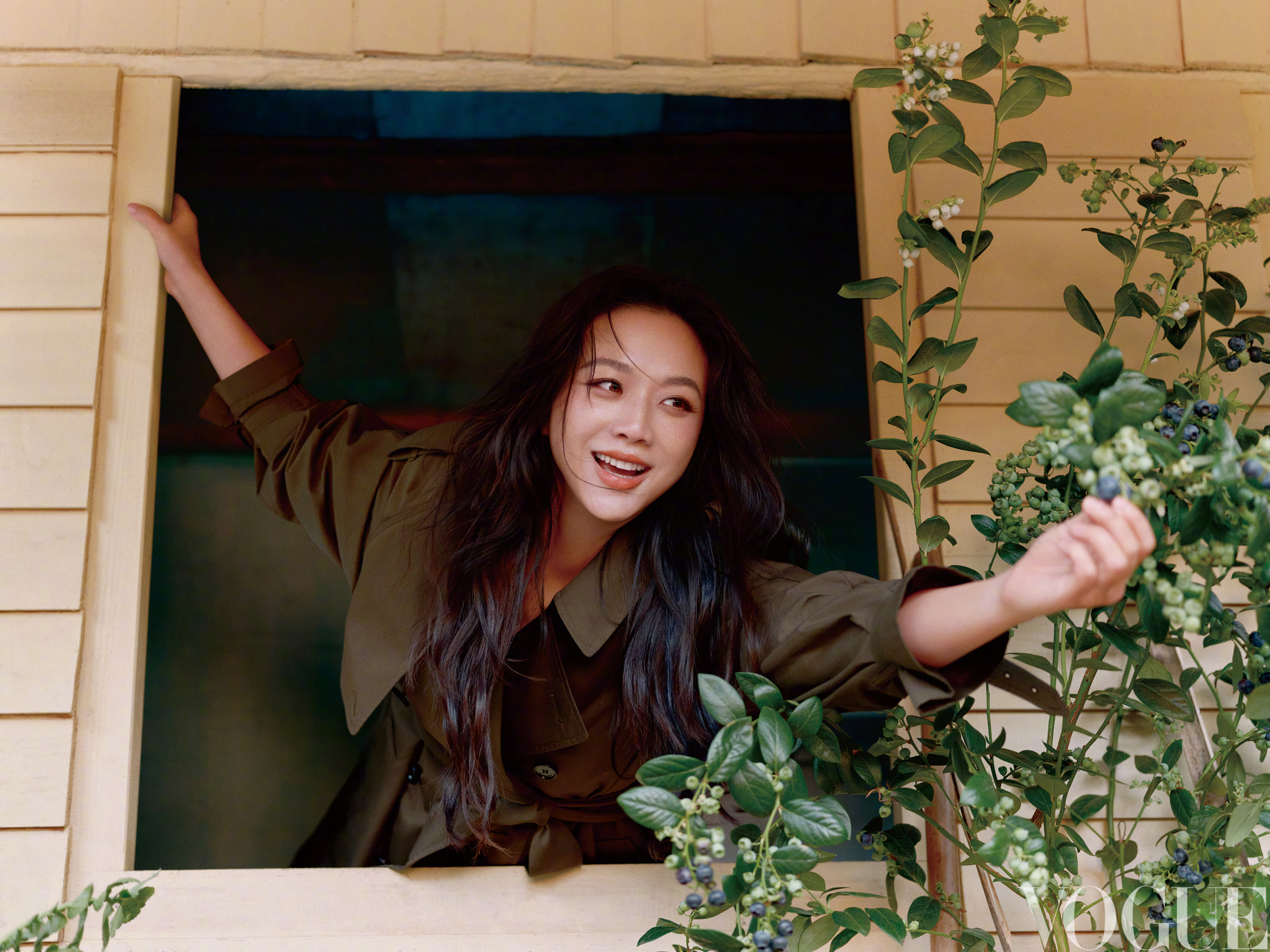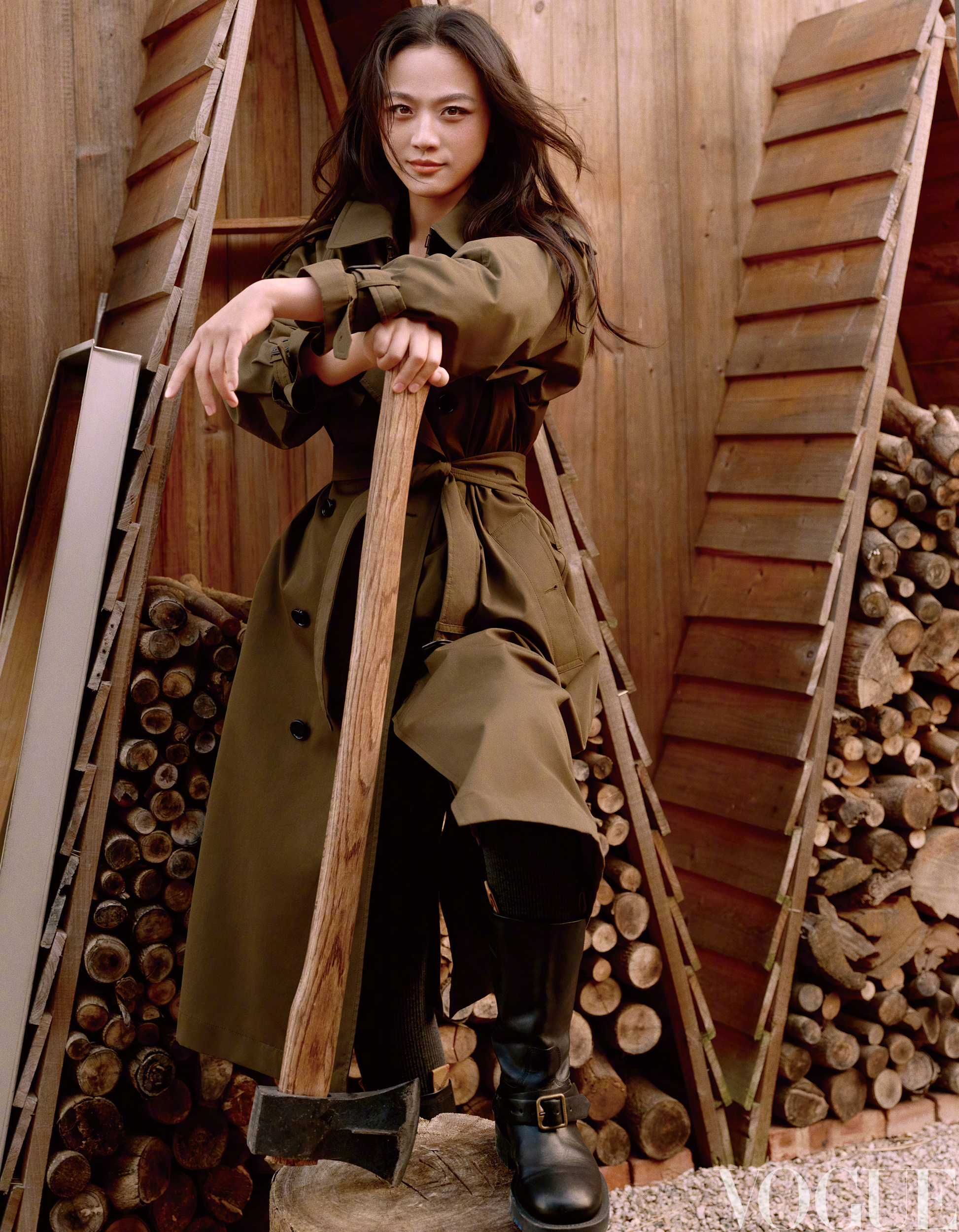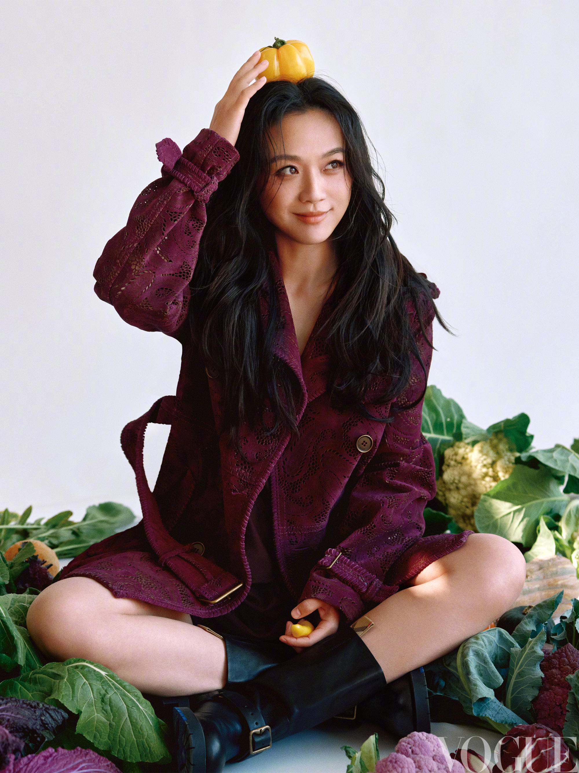 Tang Wei on the cover of Vogue China's April issue, discussing her work, family, and lifestyle. |