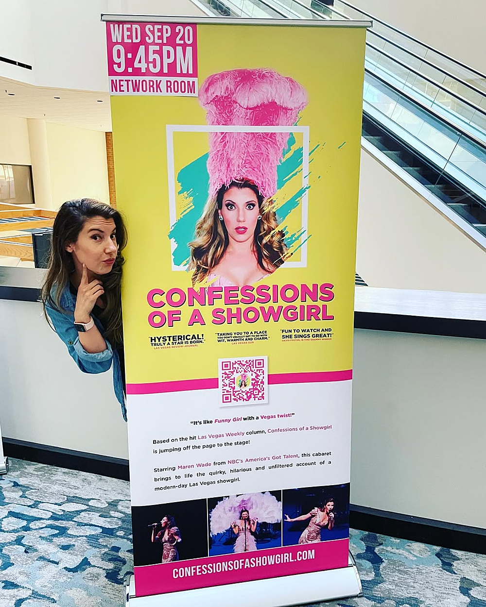 Maren Wade poses next to a billboard for her show in 2023. *Photo: Instagram Maren Wade* |