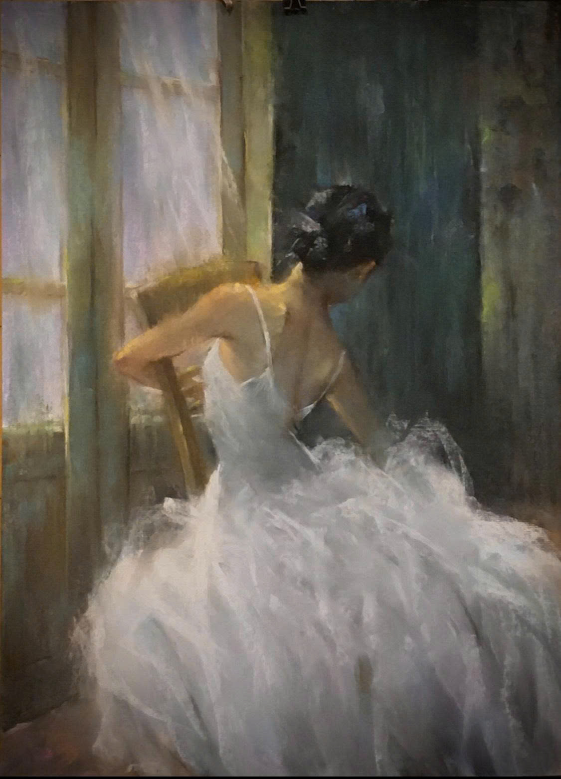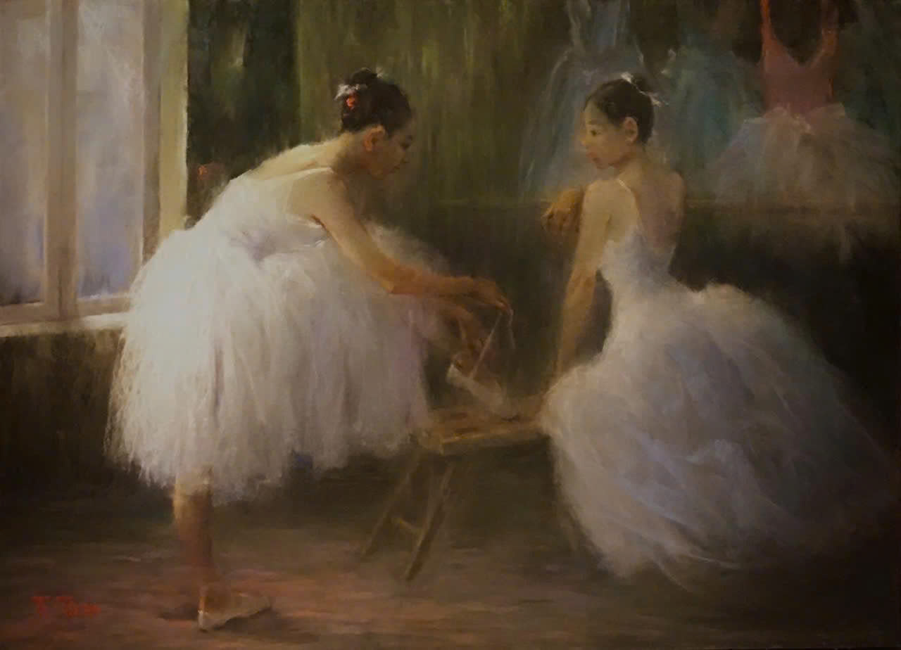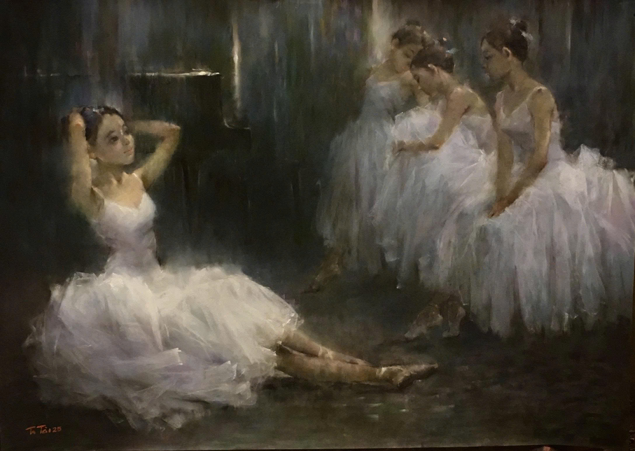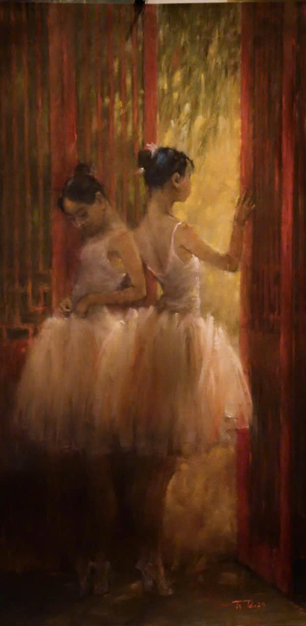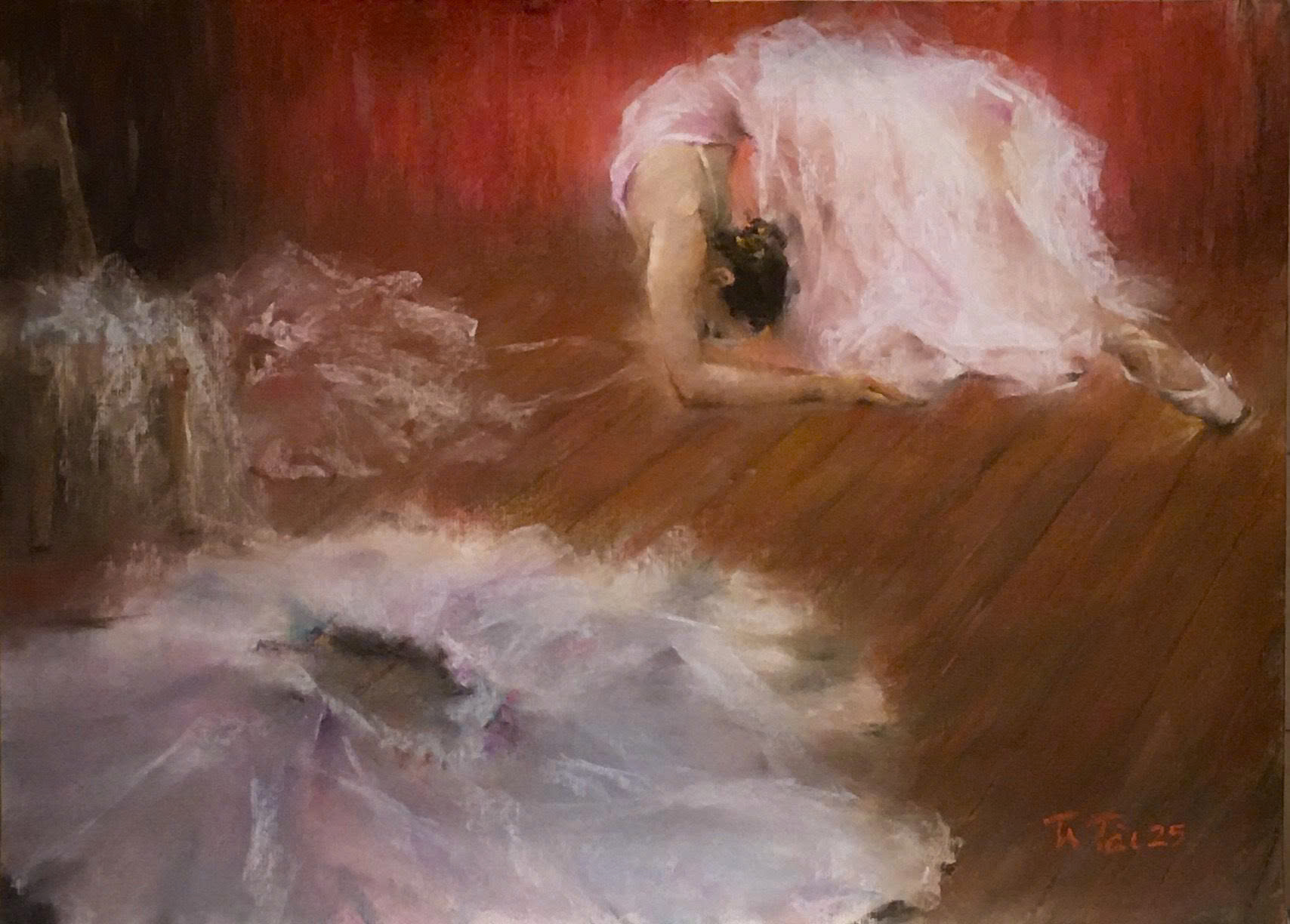 The artist spent considerable time attending dance school rehearsals, observing the performers, sketching, and taking photos for reference. The dancers' arduous training process inspired him to pursue this theme. |