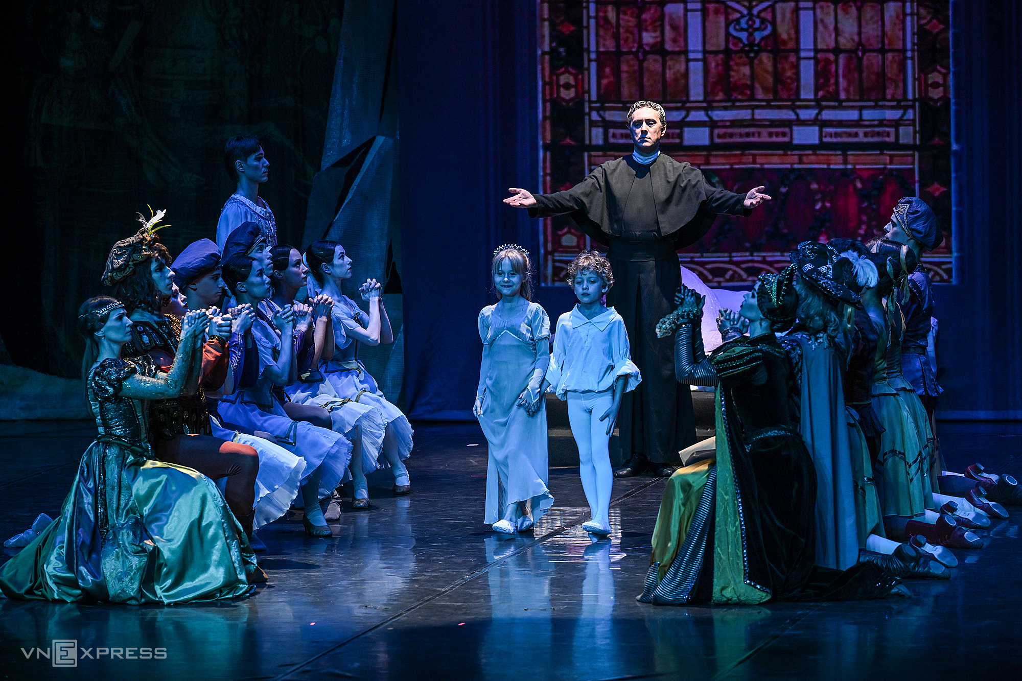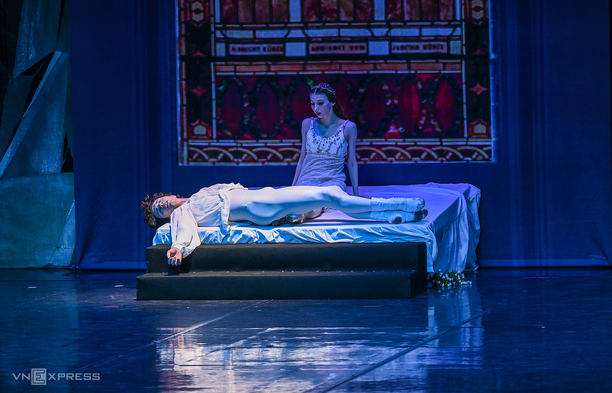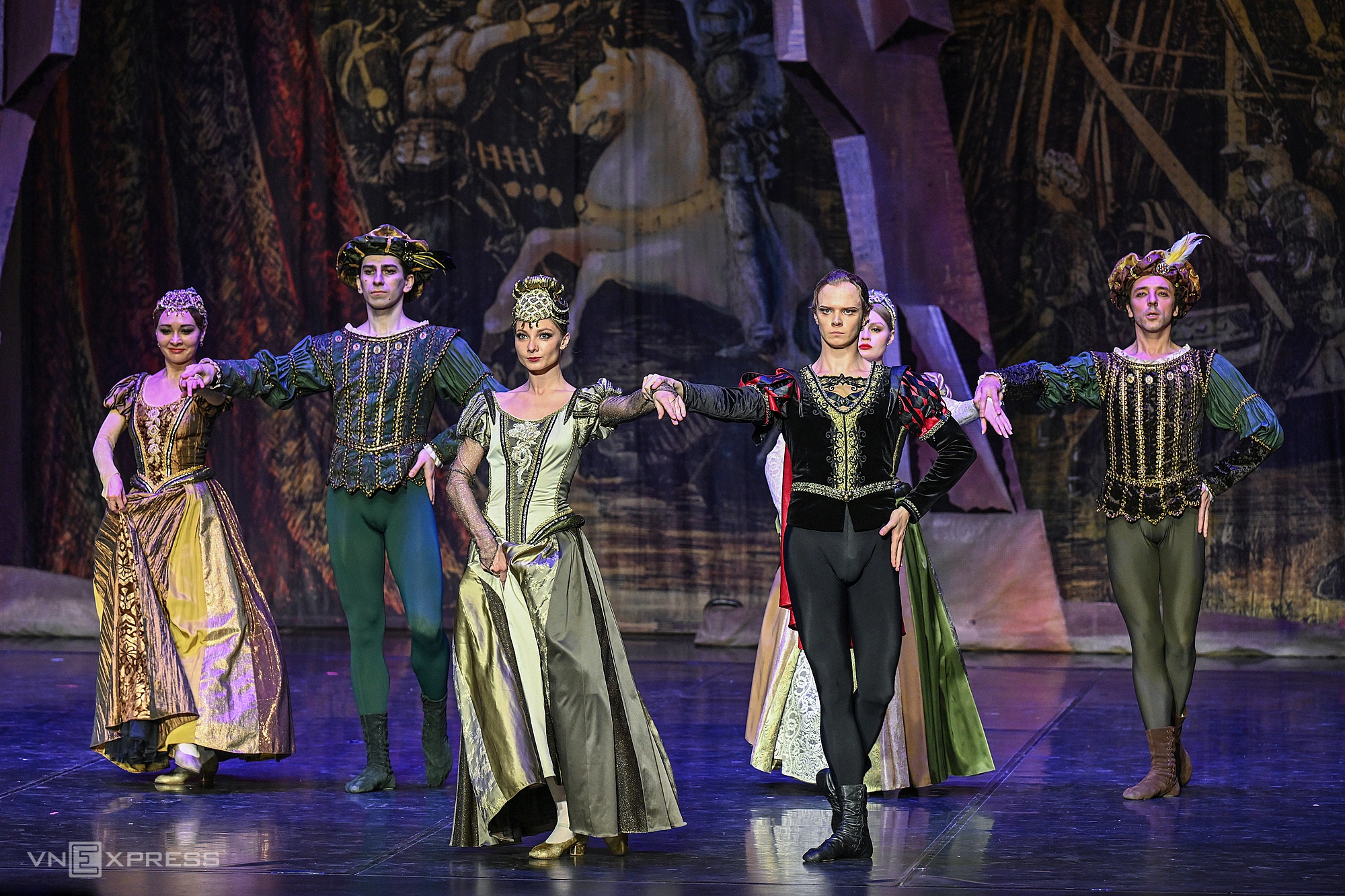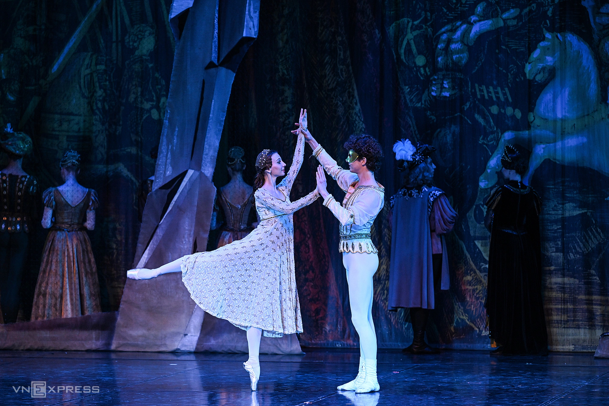 Artists from the Russian State Ballet presented 'Romeo and Juliet' on the evening of 26/3 in Hanoi, their second performance after 'The Nutcracker' on 25/3. Over two and a half hours, ballet vividly brought the timeless love story to life. The production, adapted from William Shakespeare's work, was choreographed by People's Artist Vyacheslav Gordeev.