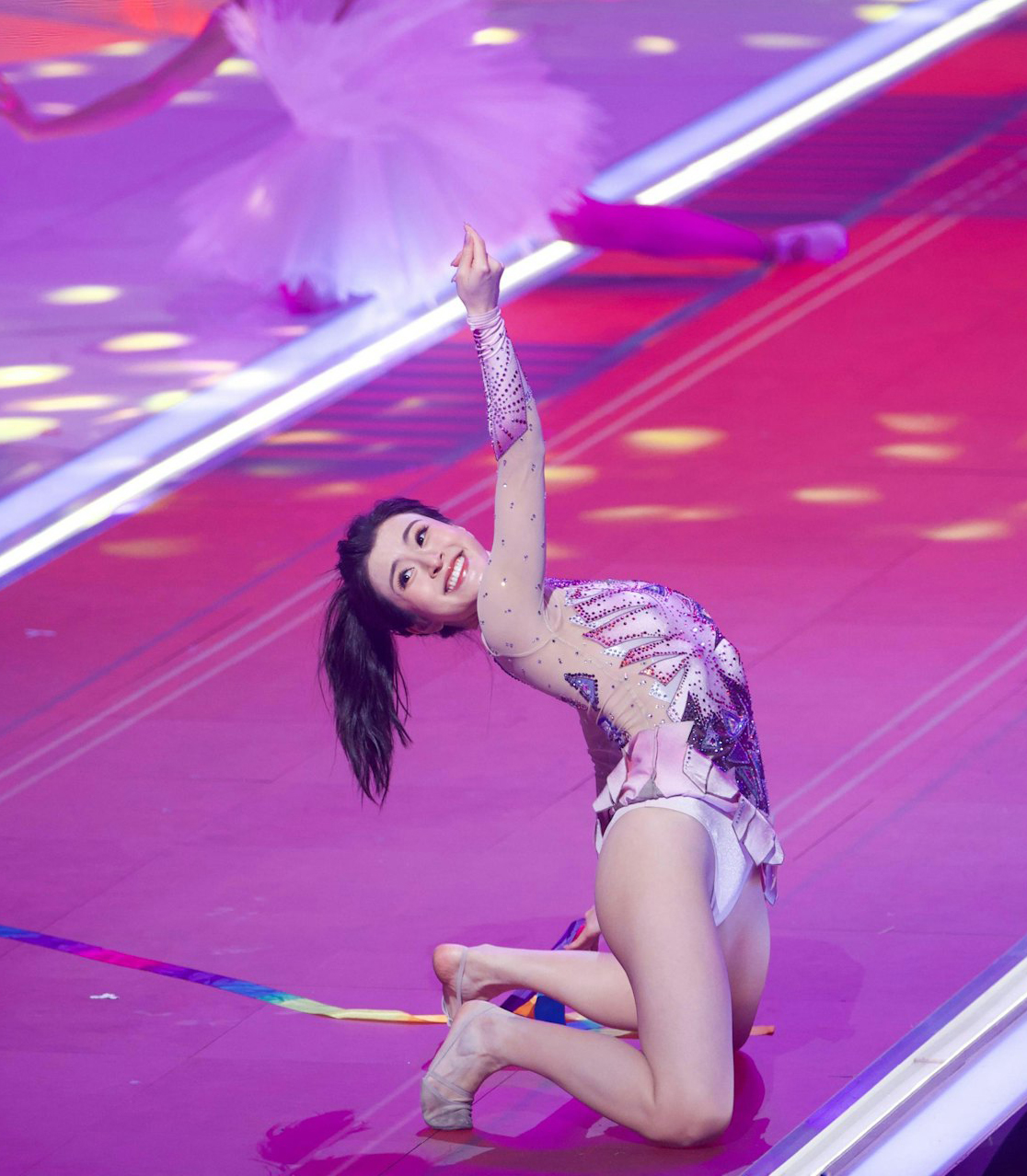 Tran Vinh Thi showcases her rhythmic gymnastics skills at Miss Hong Kong. |