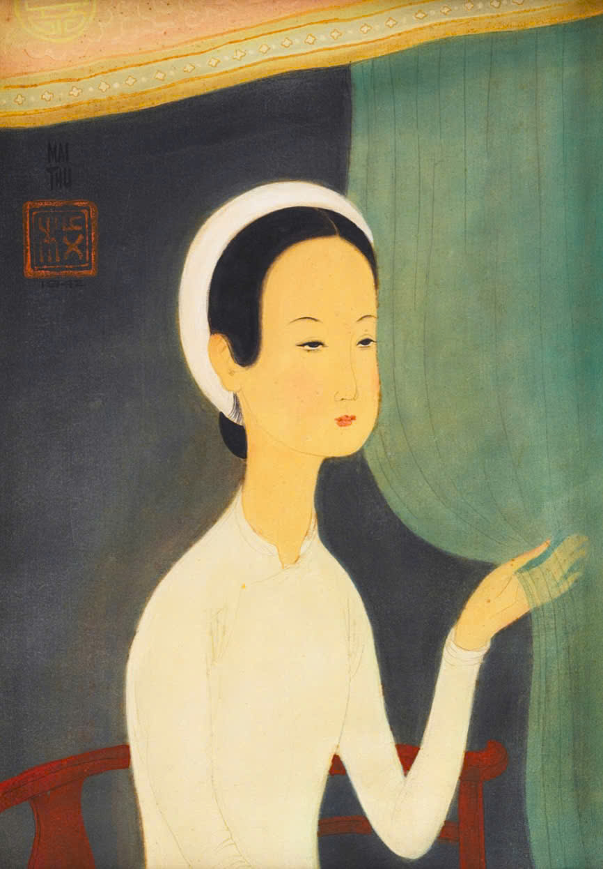 Renowned painter Mai Trung Thu (1906-1980) is celebrated for his exquisite portrayals of young Vietnamese women, often depicted in ao dai, with slender figures, hair tied in a bun or flowing loose, and notably dreamy eyes. His works frequently achieve high prices at auction, reflecting his significant influence in Vietnamese art. Tran Van Can, a fellow renowned painter, once remarked that no one painted eyes as beautifully as Mai Trung Thu.